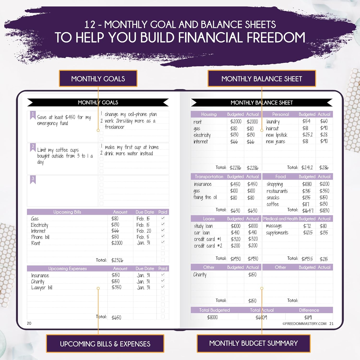Financial Planner - Monthly Budget Planner with Cash Envelopes & Monthly Bill Organizer | A 12-Month Journey to Financial Freedom | Bill Payment Tracker Organizer, Debt, Expense Tracker & Money Saving