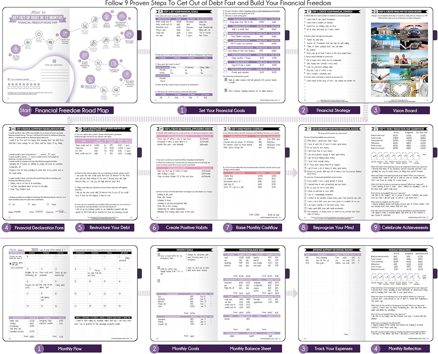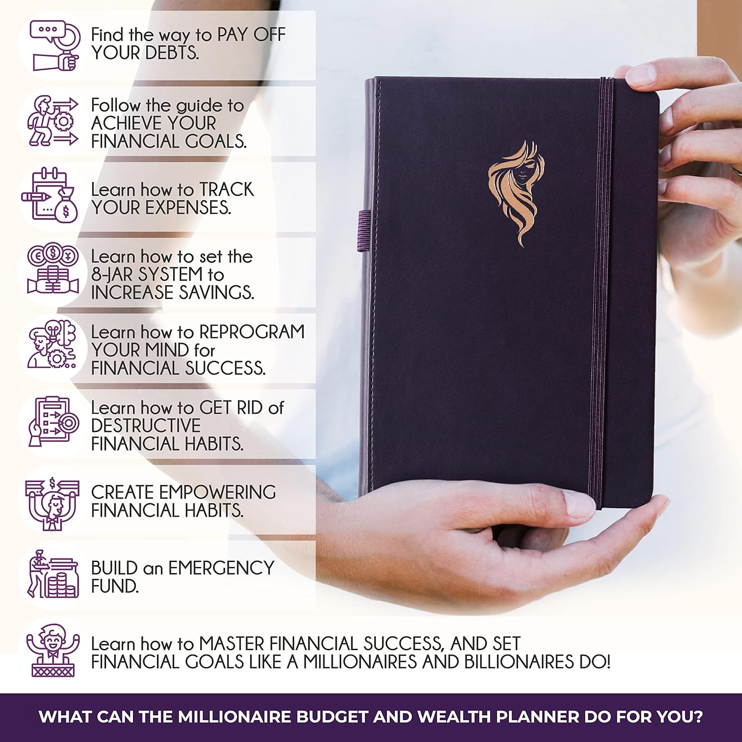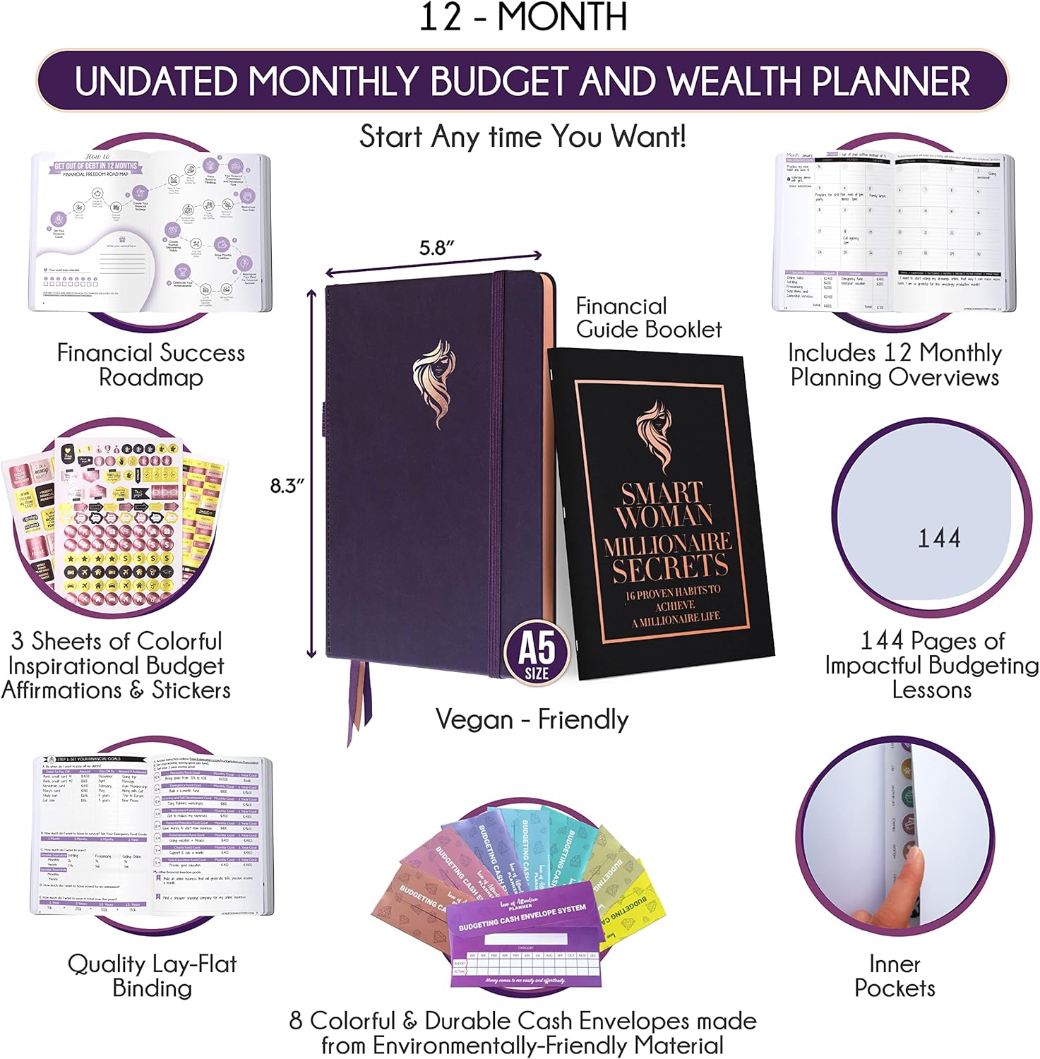 - BUDGET PLANNER WITH CASH ENVELOPES - This deluxe financial planner is an undated budget and wealth planner, measuring A5 Size (5.8 x 8.3 inches). It boasts a vegan leather hardcover, thick paper 100 gsm, 3 sheets of stickers, pen loop, elastic band, receipt pocket, and 8 pcs budgeting cash envelope system. Designed to guide you in reprogramming your mindset for financial success, it assists in managing debt, tracking expenses, boosting savings, and establishing an emergency fund.