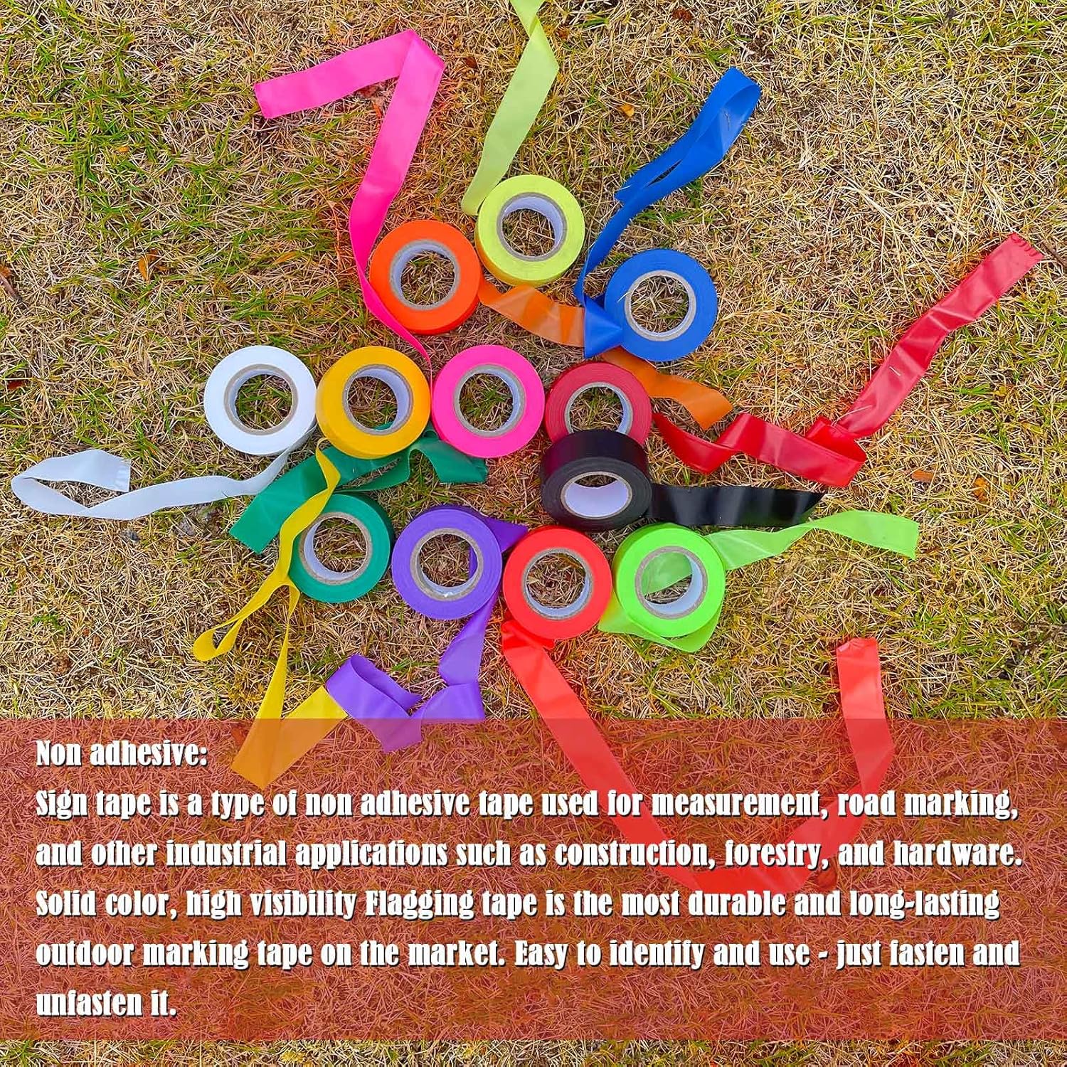- Non adhesive: Flagging tape is a non-adhesive tape used for surveying,path marking and other industrial applications such as construction, forestry, hardware. Solid color and highly visible The Flagging Tape is the most durable and longest lasting outdoor marking tape on the market. Easy to identify and easy to use - just tie and untie.