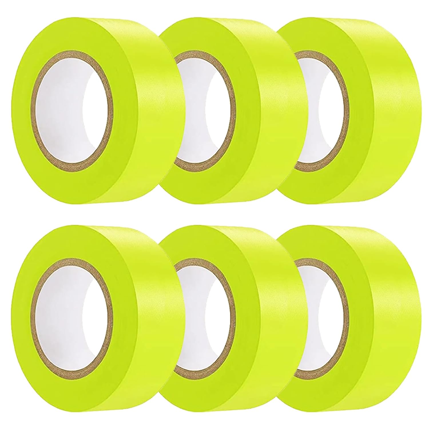6 Pack Yellow Flagging Tape, Non-Adhesive Plastic Ribbon Neon Marking Roll, 1inch*600ft, Marking Tape for Tree Marking, Hunting, Boundaries and Hazardous Areas,Trail Marking