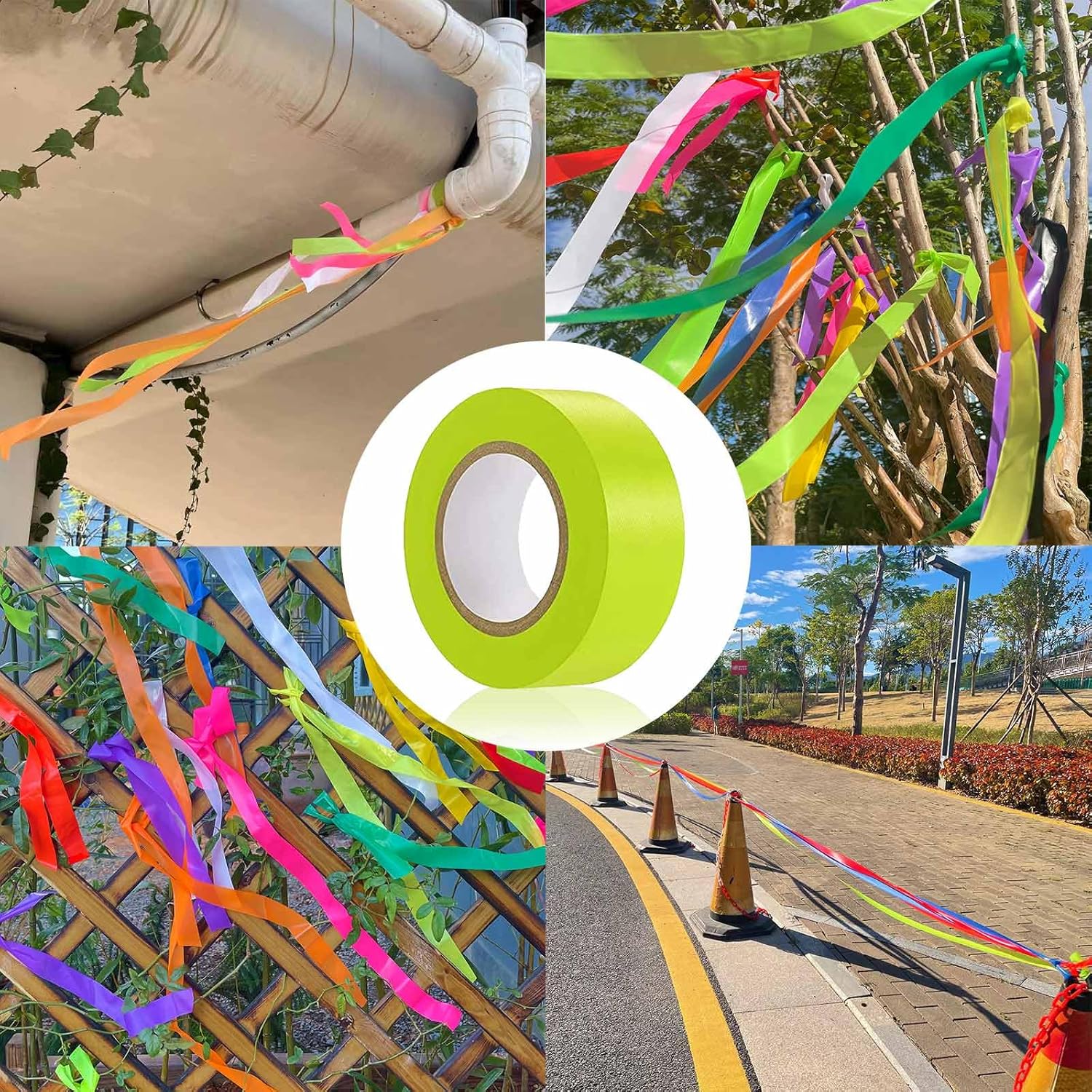 - Package includes: 6 PCS flagging tape same colors. Each marking tape roll is 1" width, 100' length, which is long and wide enough for a lot of applications. 6 color tapes can meet your requirements for almost every possible scenes.