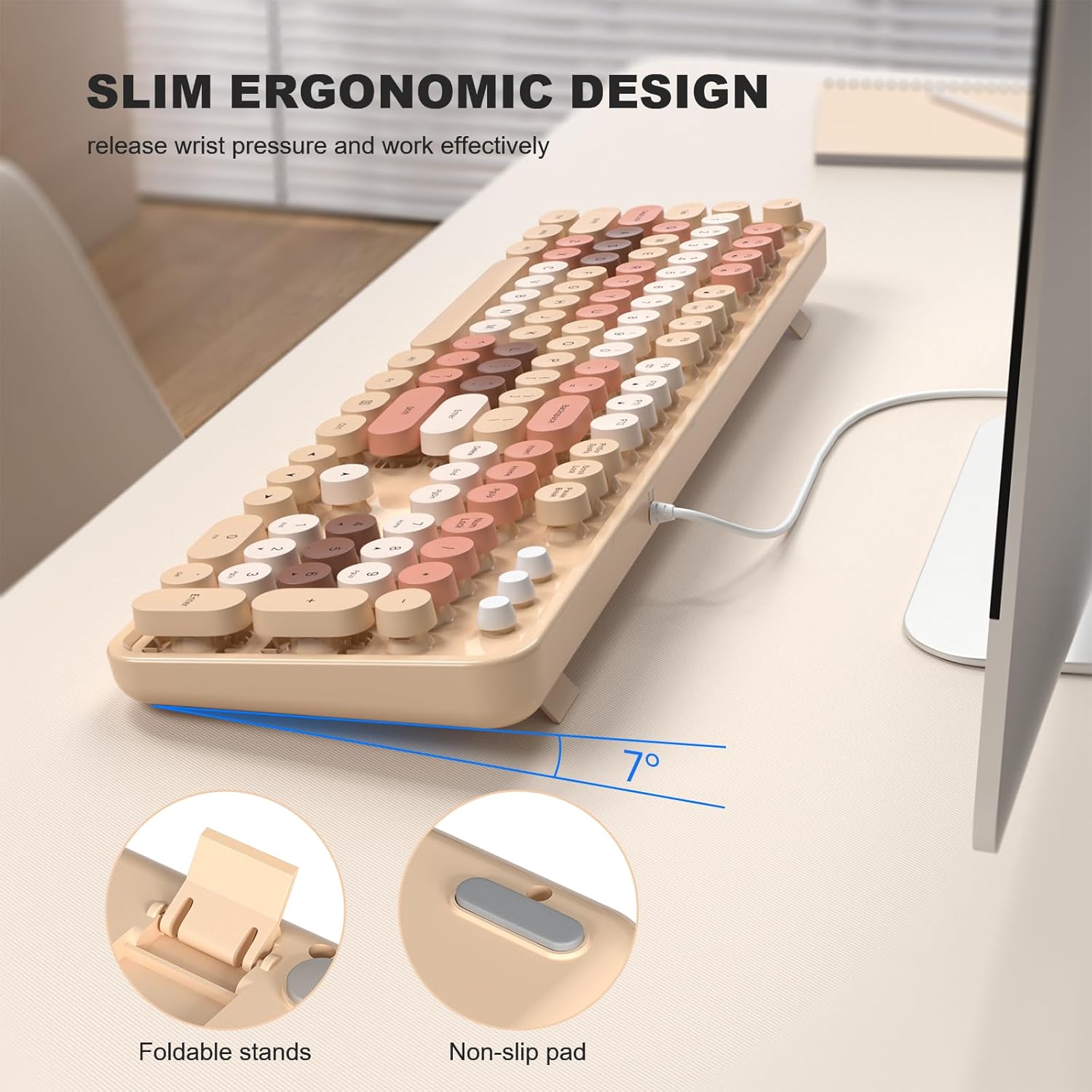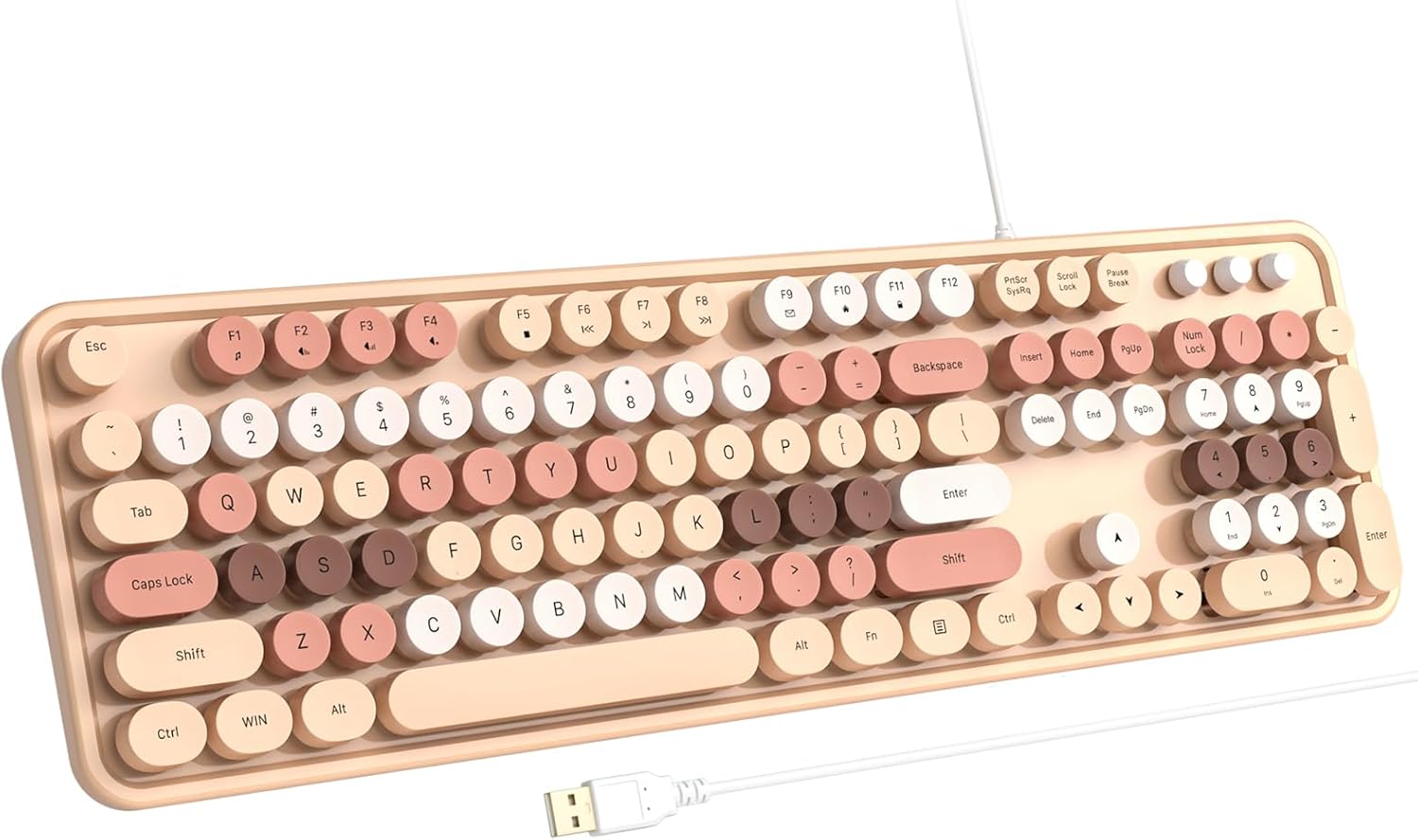 Computer Wired Keyboard, Plug Play USB Full-Size Keyboard with Large Number Pad, Caps Indicators, Foldable Stands, for Windows 7/8/10 PC Laptop (Milk Tea Colorful)