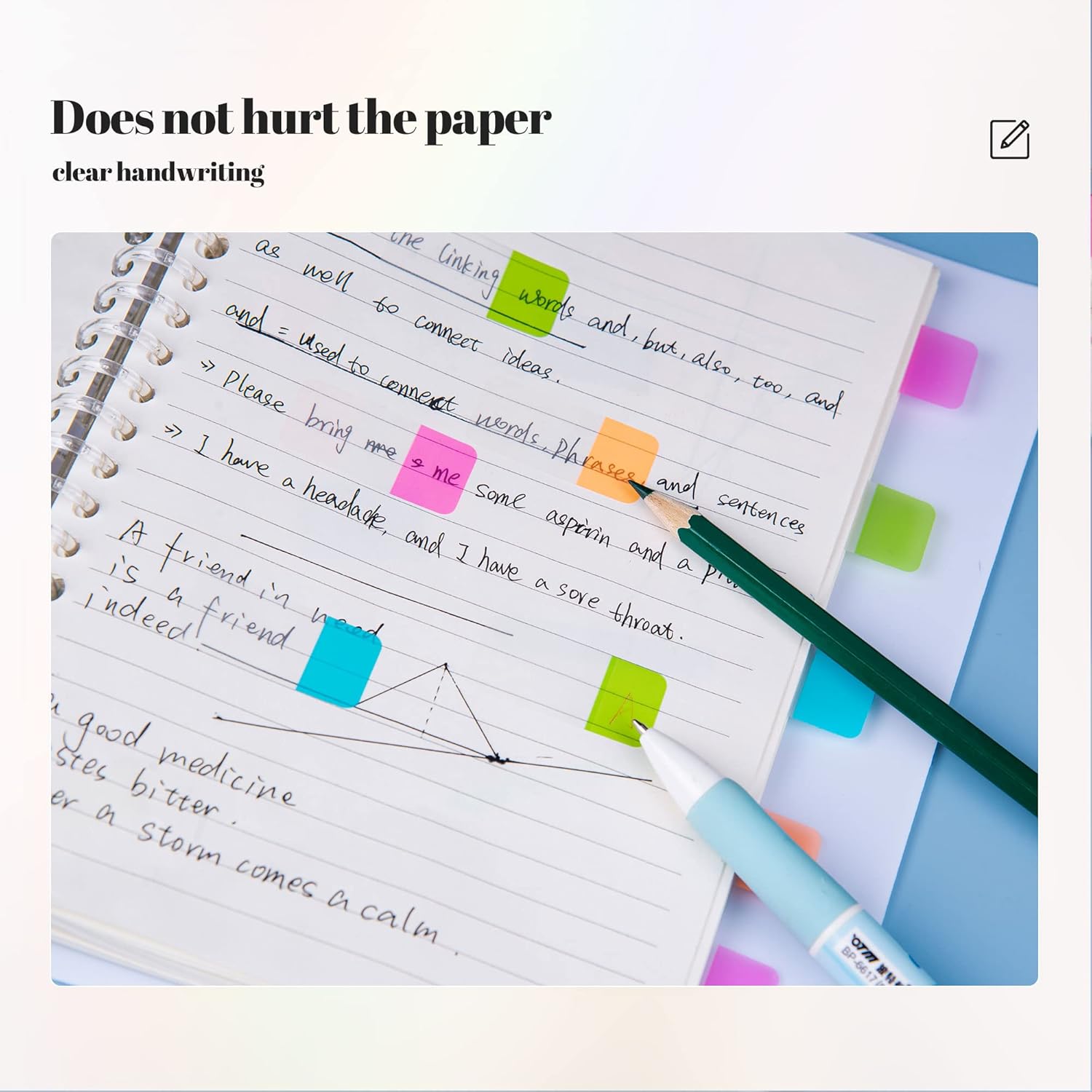 - [WIDE APPLICATION] Fluorescent translucent book sticky tabs can be used to classify and mark documents, computer message boards, reading notes, books, folders, diaries, catalogs, archives, files, and papers, and are very suitable for students, teachers, and office workers.