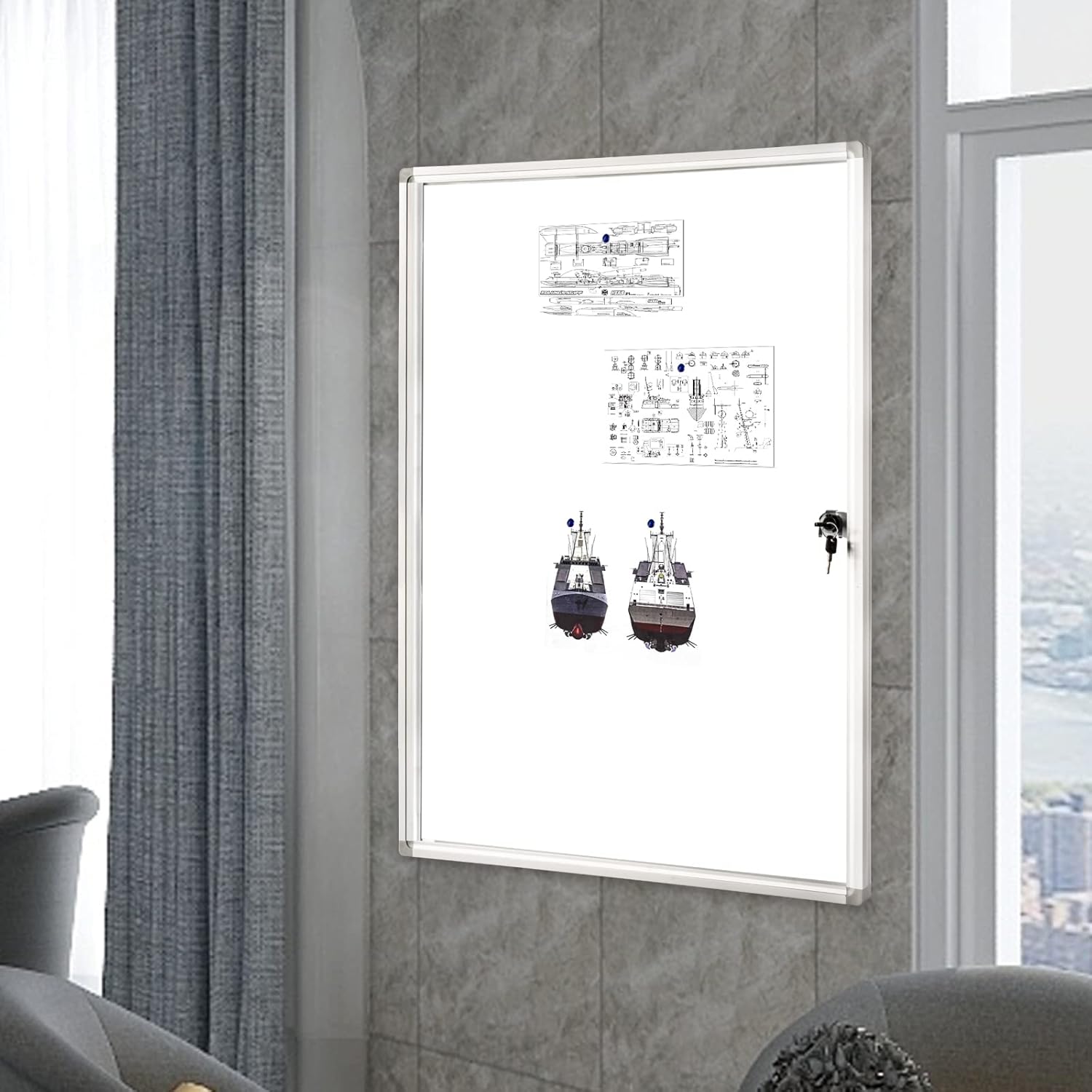 - [Lockable and Safe] —Lockable acrylic doors keep information safe from theft and vandalism. It's convenient to post and update notice documents,messages,pictures,memos,calendars,and sticker under the protection of key mechanisms