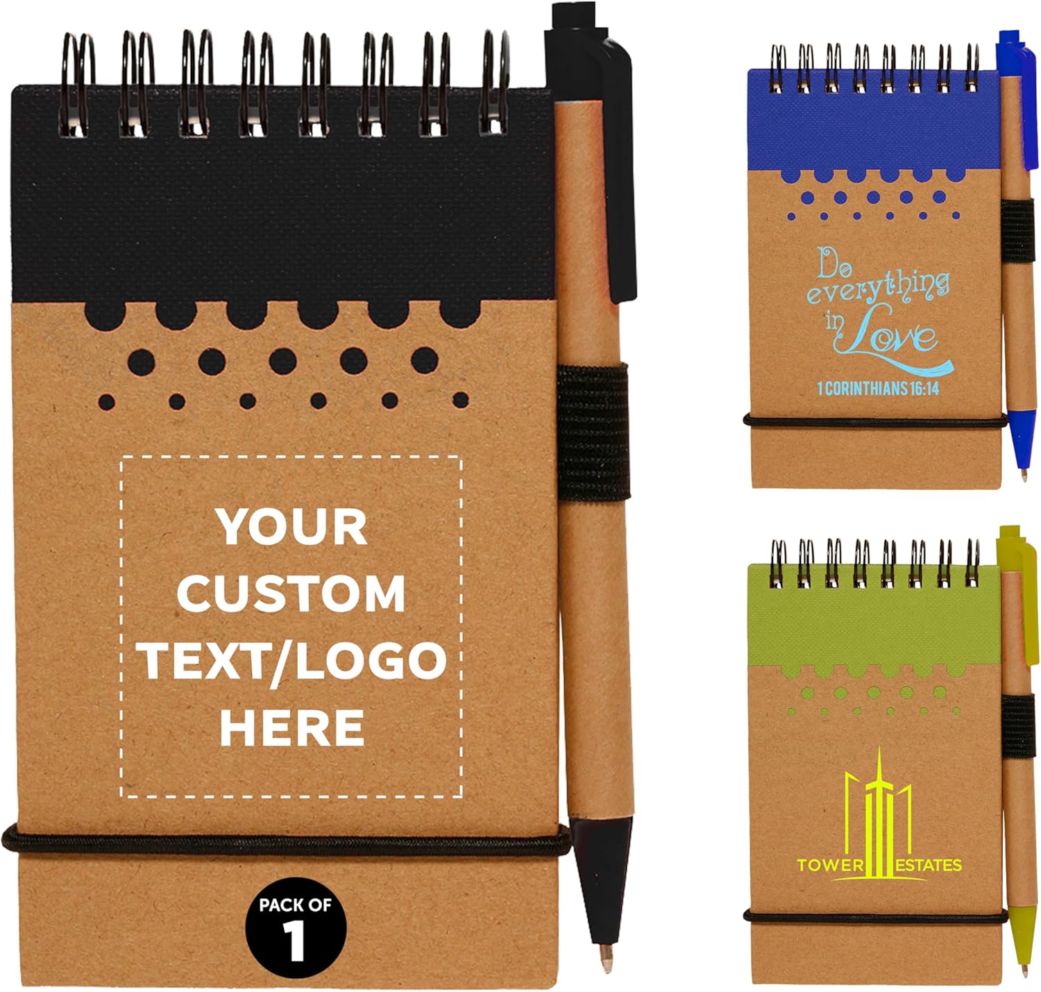 DISCOUNT PROMOS 1 Recyclable Spiral Small Notebooks Pack - Customizable Text, Logo - 60 Lined Pages - Black
