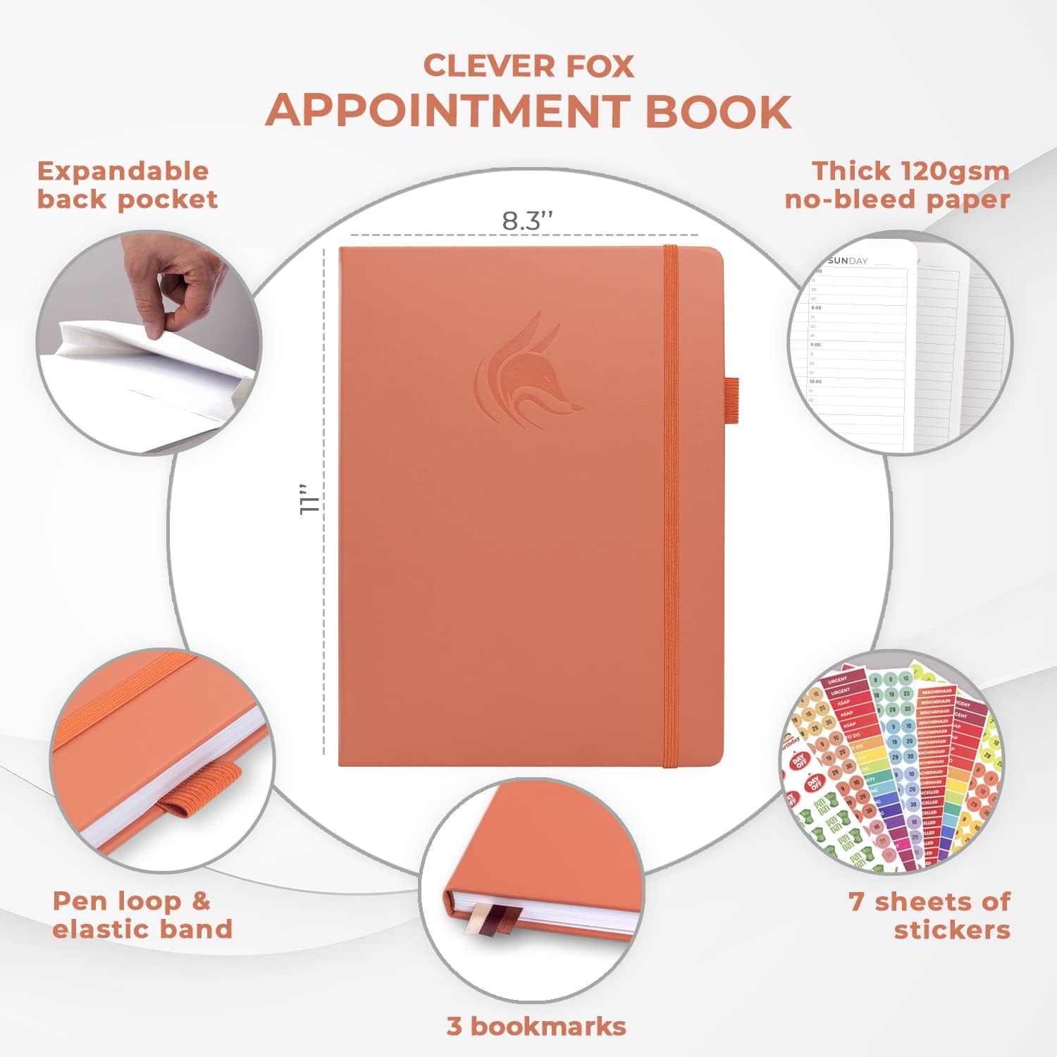 Clever Fox Appointment Book – Hourly Schedule Planner with 15-Minute Increments – Time Box Planner for Daily Work & To-Dos – Weekly & Monthly Spreads, Undated, Hardcover, 8.3x11″ (Terracotta)