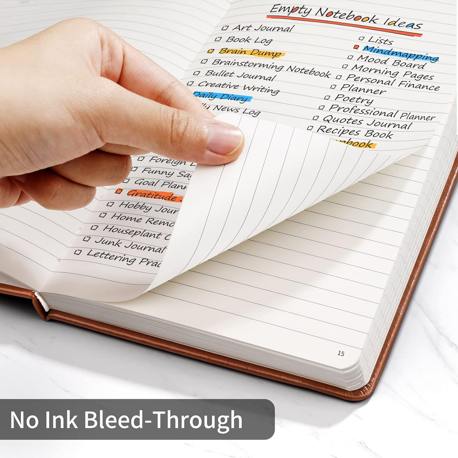 - Multifunctional Cover: The hard cover is made of vegan leather, and designed with a pen loop, an elastic band, two ribbon page markers, an expandable inner pocket.