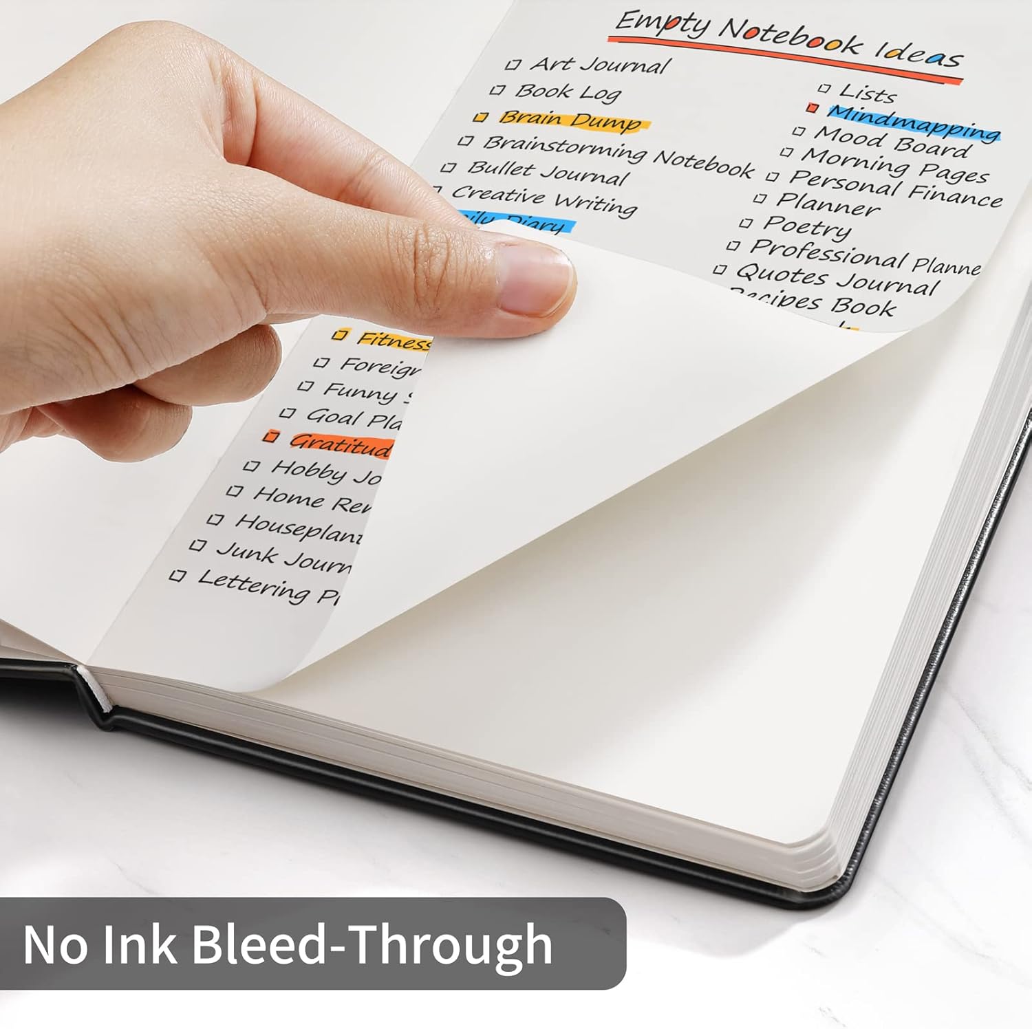 - Multifunctional Cover: The hard cover is made of vegan leather, and designed with a pen loop, an elastic band, two ribbon page markers, an expandable inner pocket.