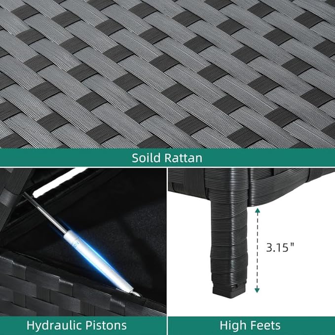 YITAHOME 230 Gallon Wicker Deck Box, XXL All-Weather Outdoor Storage Box, Rattan Storage Bin for Patio Furniture, Outdoor Cushions, Pool Storage and Garden Tools - Black