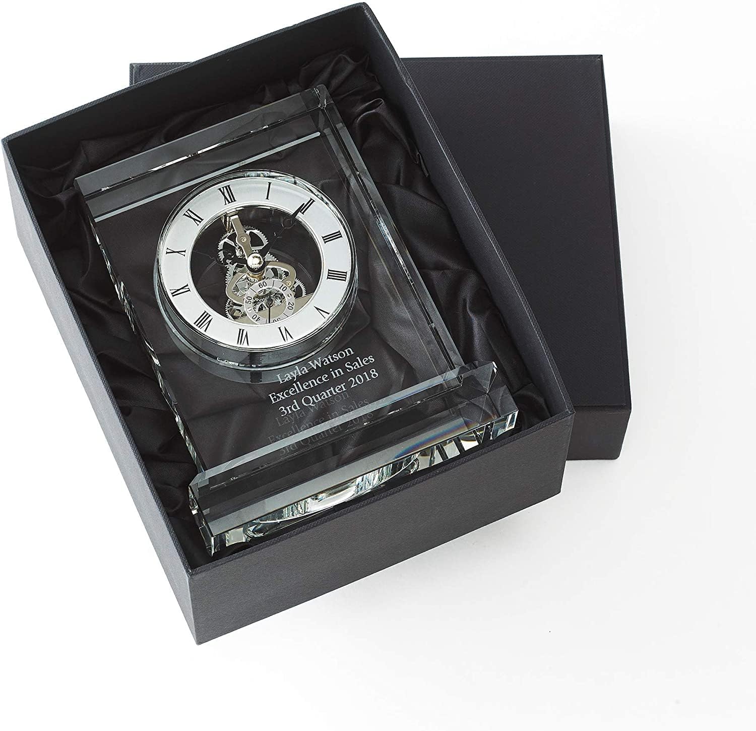- PERSONALIZED AWARDS - Create an engraved, personalized desk or shelf clock for employee recognition, for your boss, retirement, and showing appreciation for your workforce's achievements in our quality crystal glass trophies