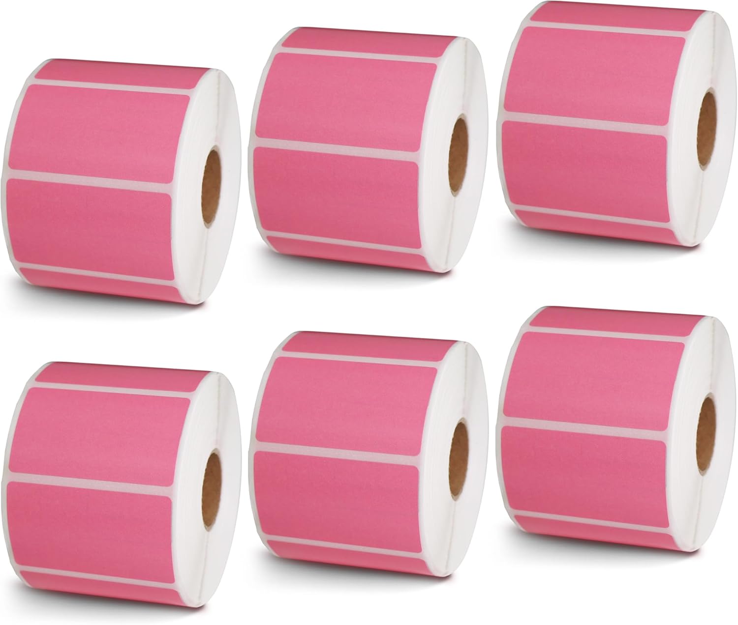 BETCKEY - 2.25" x 1.25" UPC Barcode & Multipurpose Labels Compatible with Zebra & Rollo Label Printer,Premium Adhesive & Perforated[Pink, 6 Rolls, 6000 Labels]
