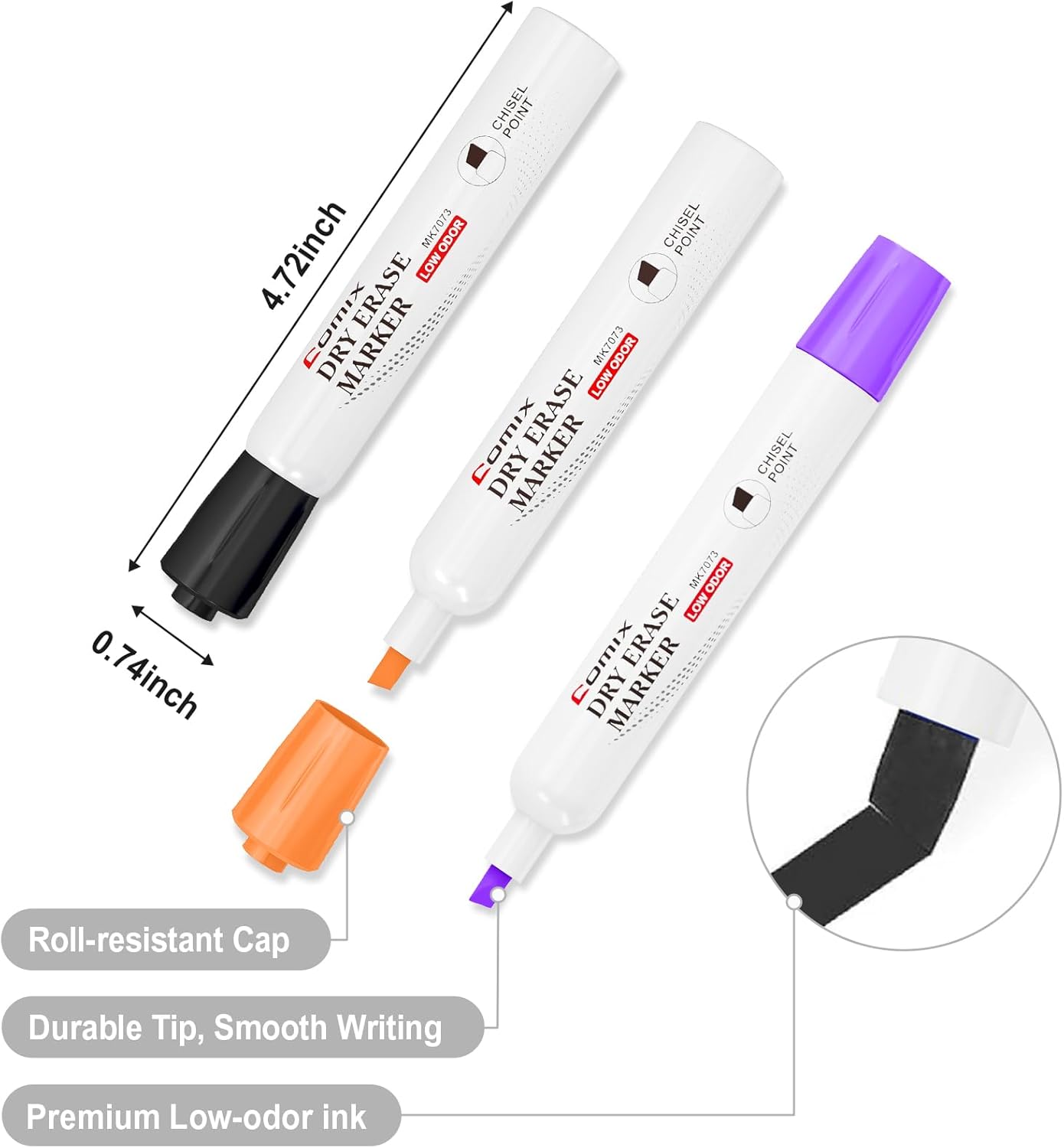 Comix Dry Erase Markers, Chisel Tip White Board Markers, 36 Bulk 12 Assorted Colors Low Odor Markers for Teachers Office & School Supplies