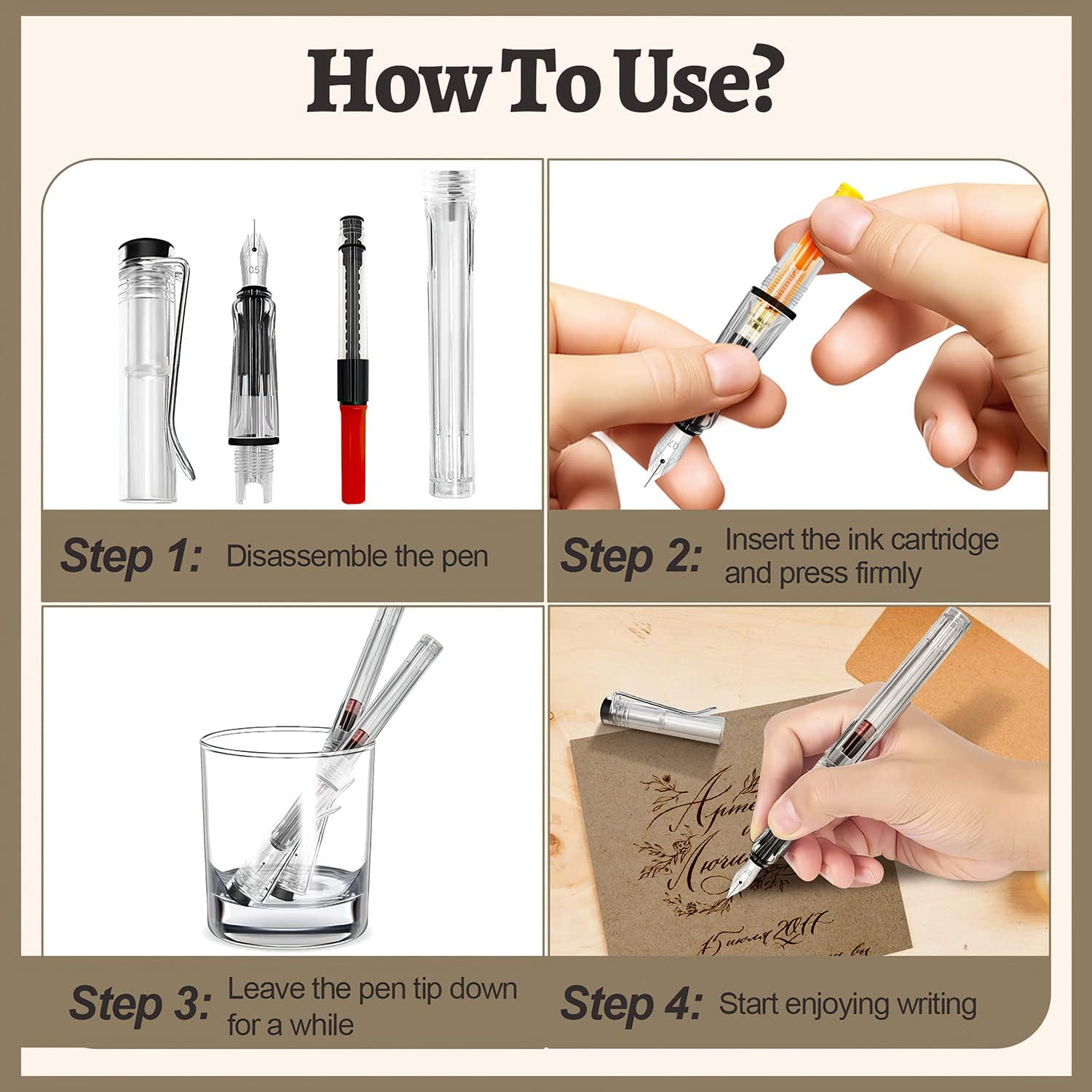 - Two Ways To Refill Ink: Equipped with 6 ink converters, rotate the pen's plunger converter to extract your preferred ink. The portable ink cartridges can be used on the go to have an instant ink supply