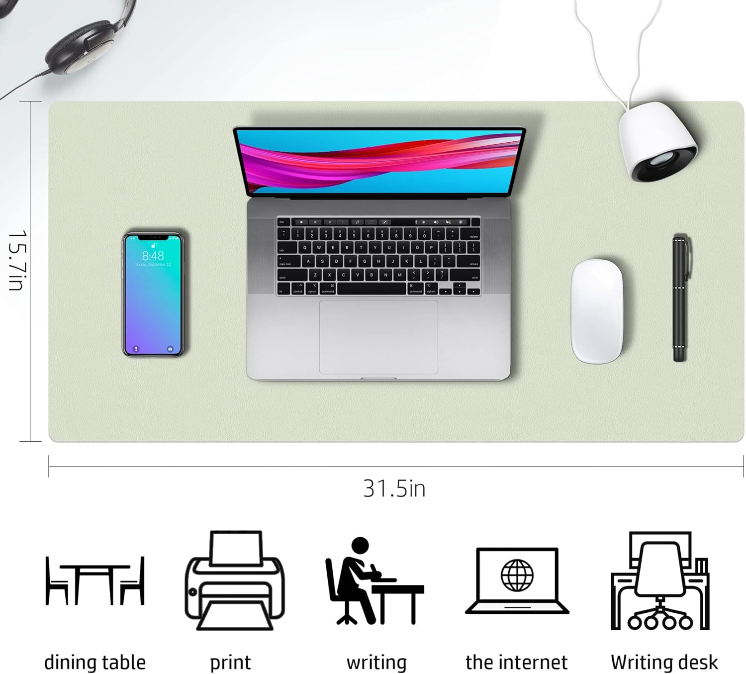 Aothia Double-Sided PU Leather Desk Pad - Non-Slip Large Mouse Pad & Desk Mat for Office, Home - Waterproof, Easy to Clean, Durable Dual-Sided Surface (31.5" x 15.7", Matcha Green)
