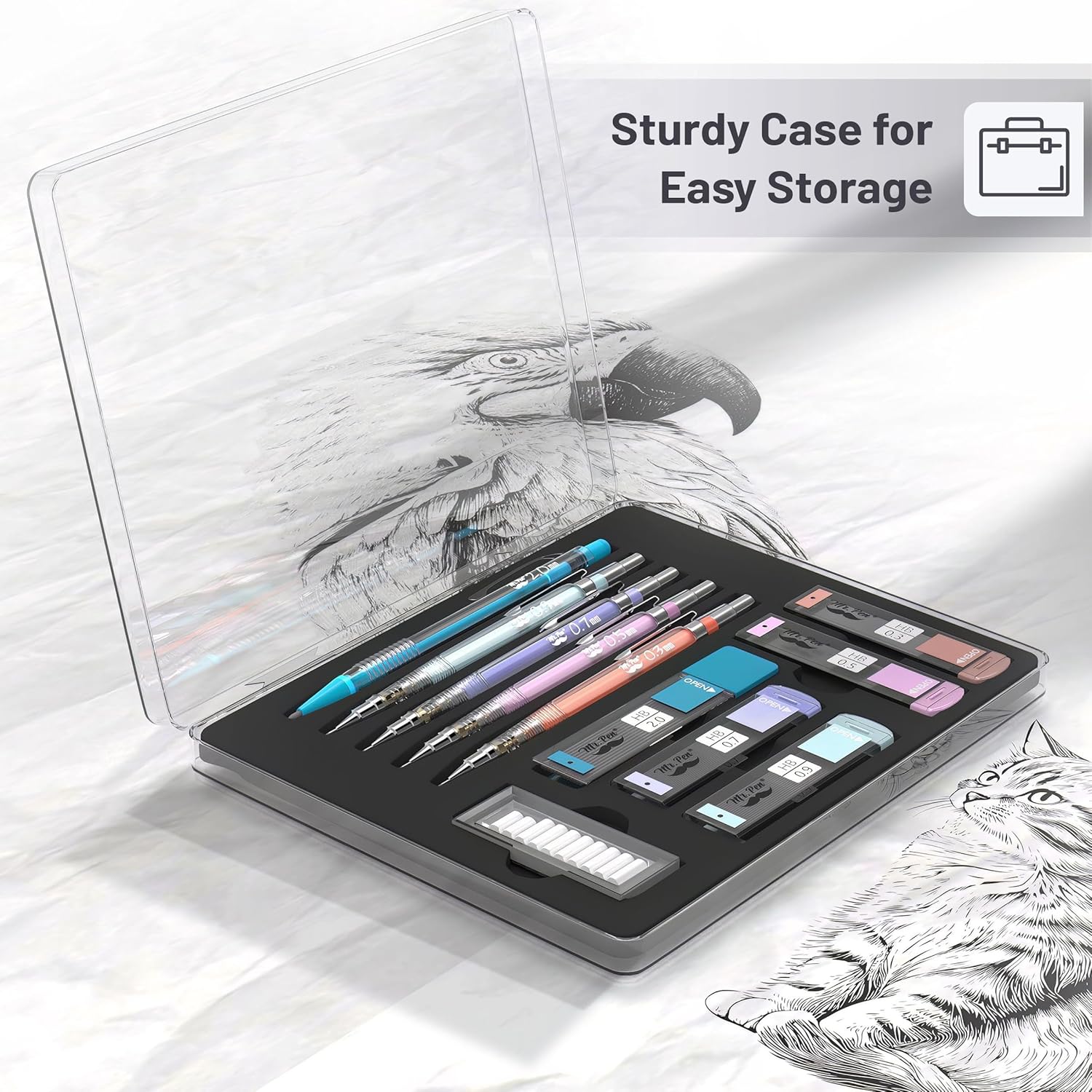 - Our mechanical pencil set is ideal for school or office use! The set comes packaged in a reusable box with an easy-to-close lid to keep the pencils organized and protected from damage when not in use!