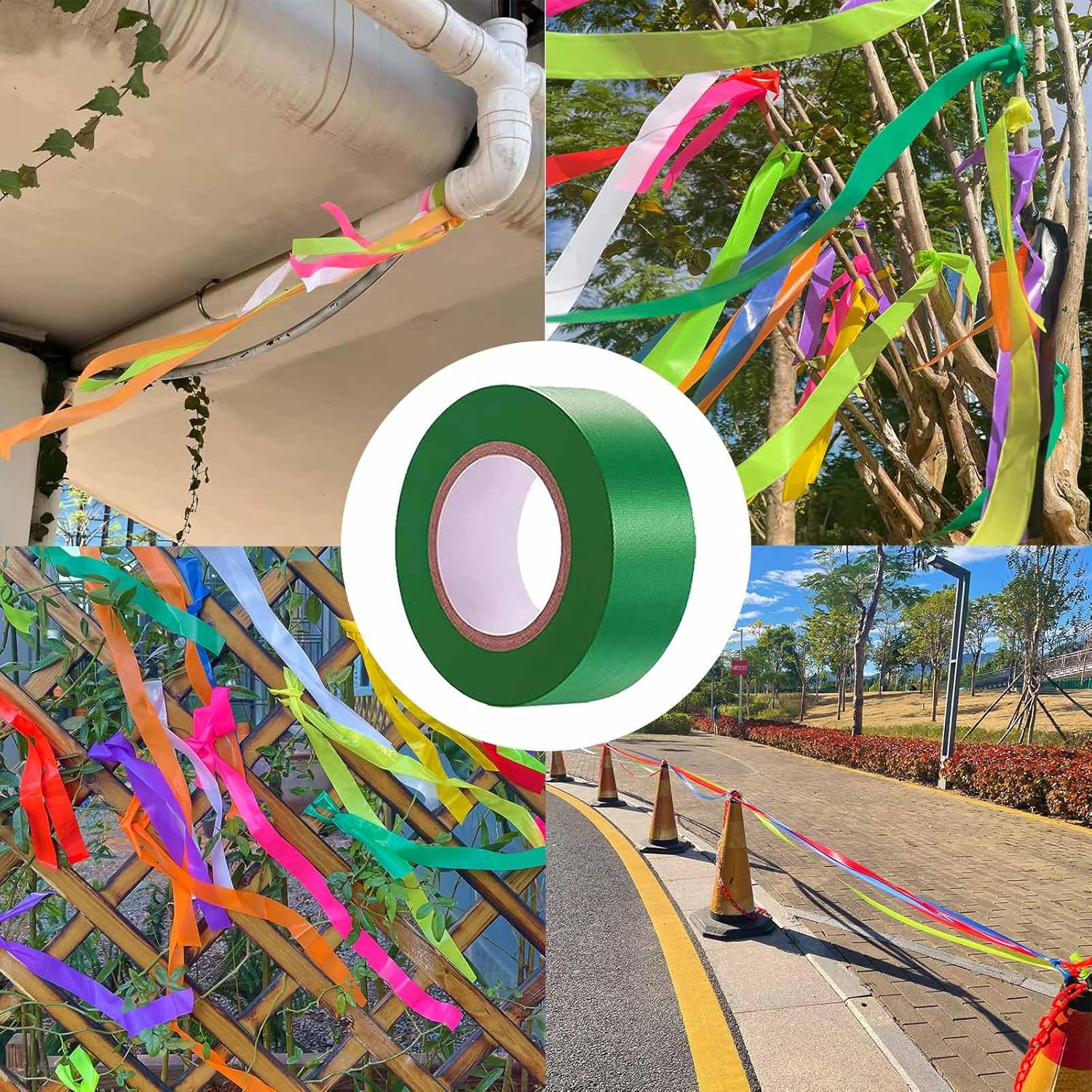 - Package includes: 6 PCS flagging tape same colors. Each marking tape roll is 1" width, 100' length, which is long and wide enough for a lot of applications. 6 color tapes can meet your requirements for almost every possible scenes.