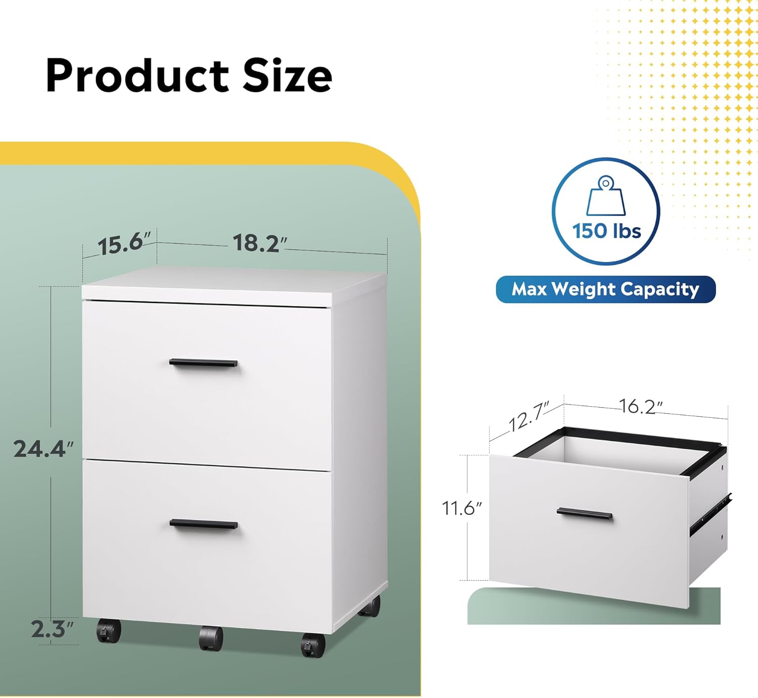 - ăStylish and FunctionalăThe DEVAISE 2-Drawer File Cabinet features sleek lines and a modern look, fitting perfectly in various home office environments. It enhances room appeal while providing practical use. Place it under desk and easily access files with the convenient drawer handles. Dimensions: 18.2"W x 15.6"D x 26.7"H (including wheels).