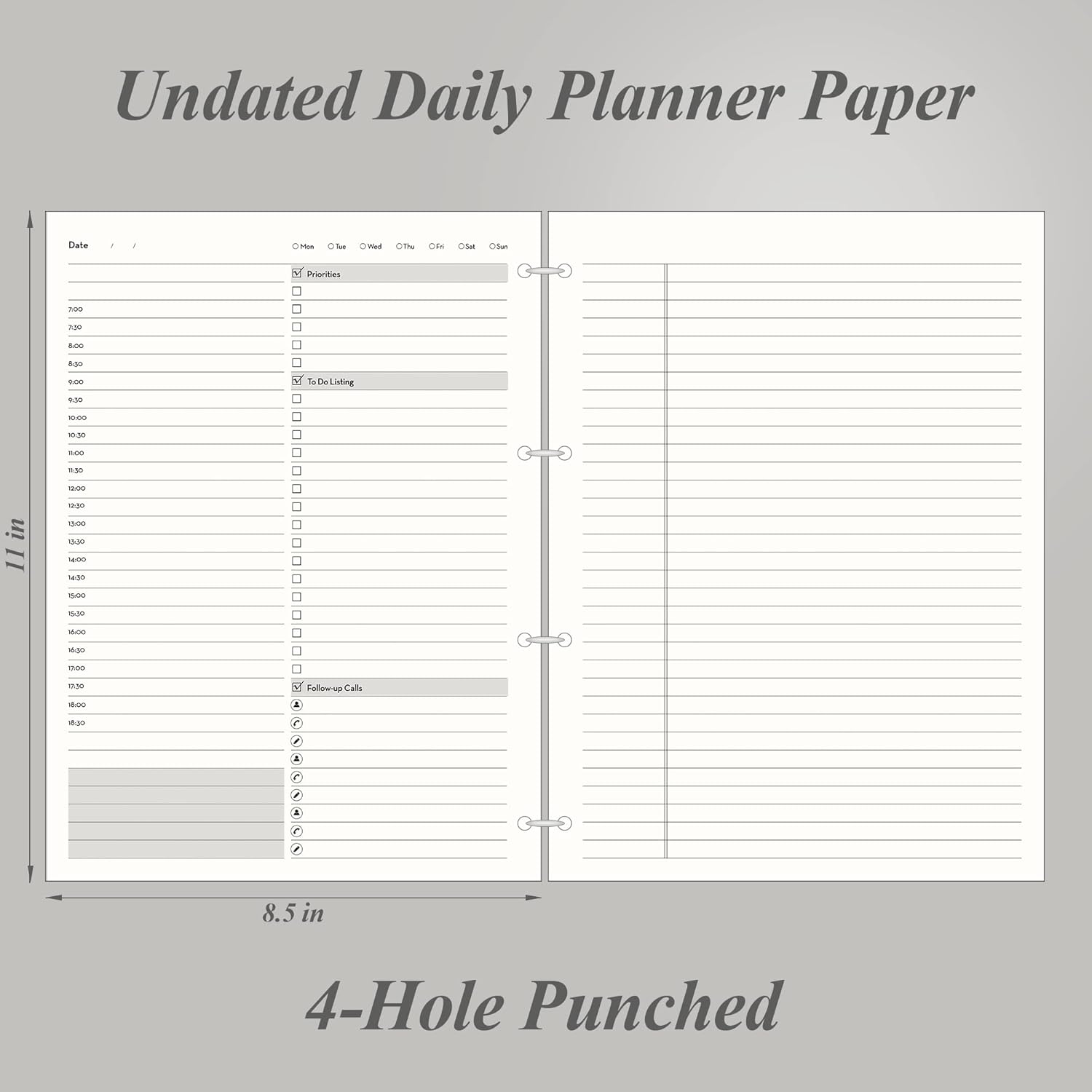 - Makes Your Life Productive: Tackle jobs every half hour, block meeting times, pre-schedule tasks, and note follow-up calls. Lined page with margins for miscellaneous notes