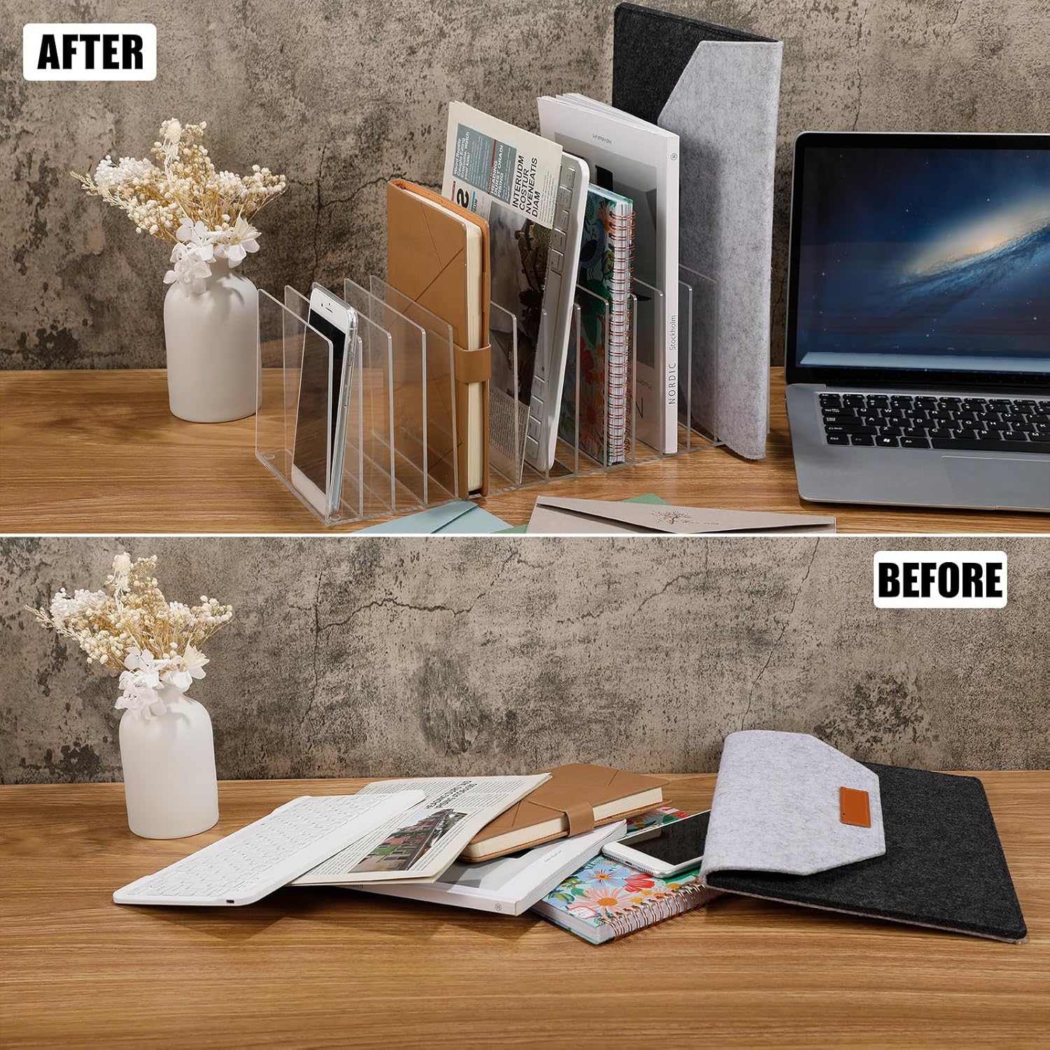 - Use with Confidence: desktop file folder organizer is made of quality clear acrylic material, sturdy and reliable in your application, clear appearance makes it easy to find what you need, while keeping your desk simple and stylish; Please remove the protective film before use