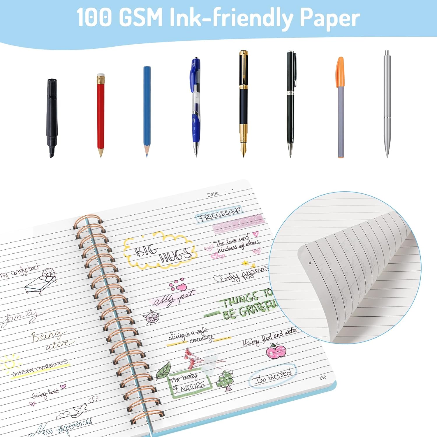 - 100 GSM Ink-friendly Paper: The pages are very thick which avoids ink bleeding through and ghosting. Suitable for most pen types, such as ballpoint pens, fountain pens, gel pens, pencils and so on. Allowing you to write on both sides of every page to maximize your usable space.