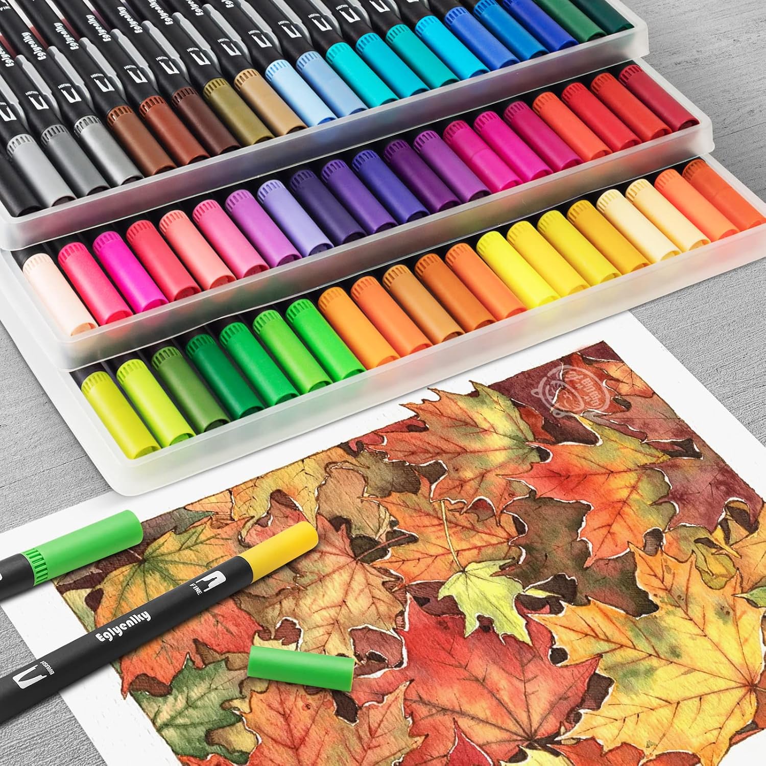 60 Coloring Pens for Adult Coloring Books, Dual Tip Brush Pens, Felt Markers with Fine and Brush Watercolor Marker Set for Kid Adult Artist Drawing