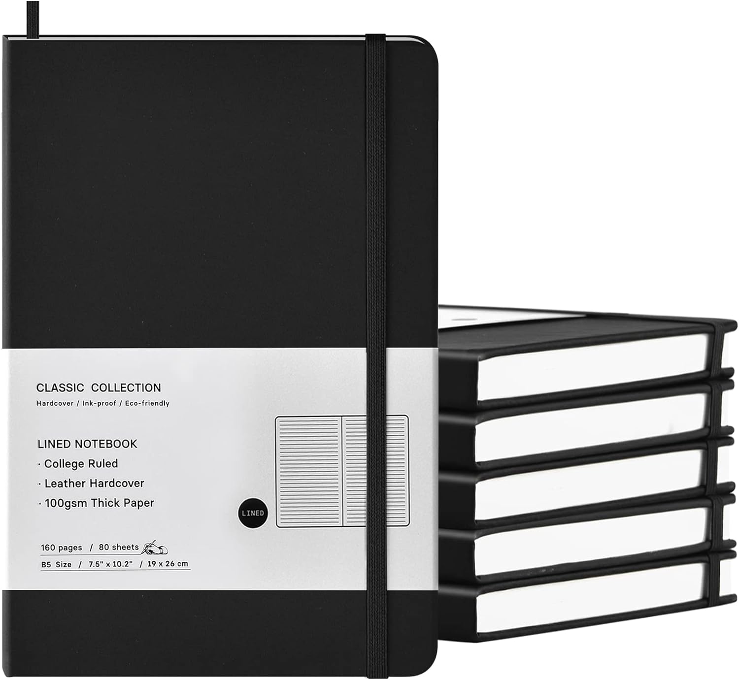 - Durable Faux Leather Hardcover:This 6-pack of B5 notebooks features smooth faux leather covers in classic black colors. These hardcover notebooks are ideal for use as leather journals, notebooks for work, or journals for writing in office, school, or business settings.