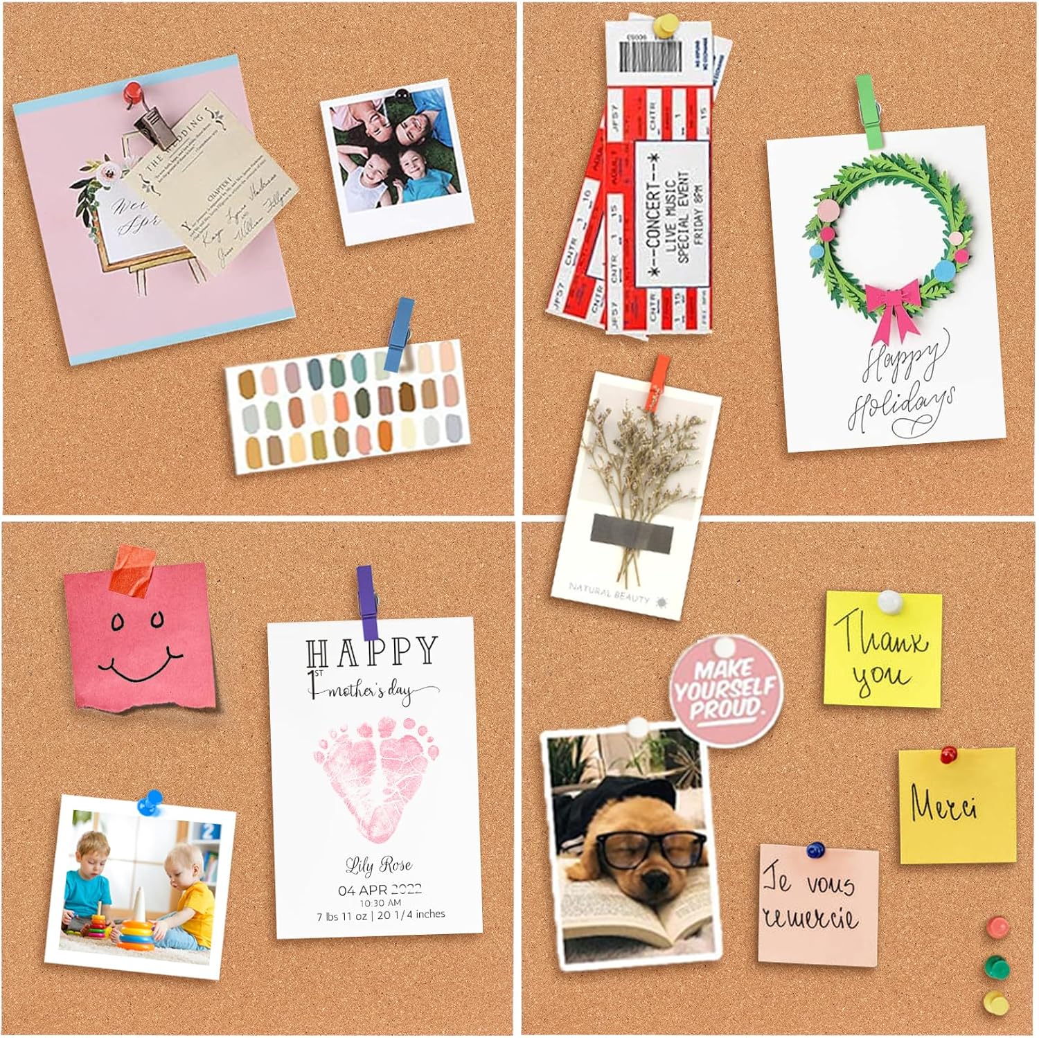 - ππππππ πππππππ - The bulletin boards are suitable for multiple scenes to make your working/ living place snug to live, using push pins to pin notes, pictures, memos, and calendars, as photo wall, miscellaneous list, travel map, weekly plan.