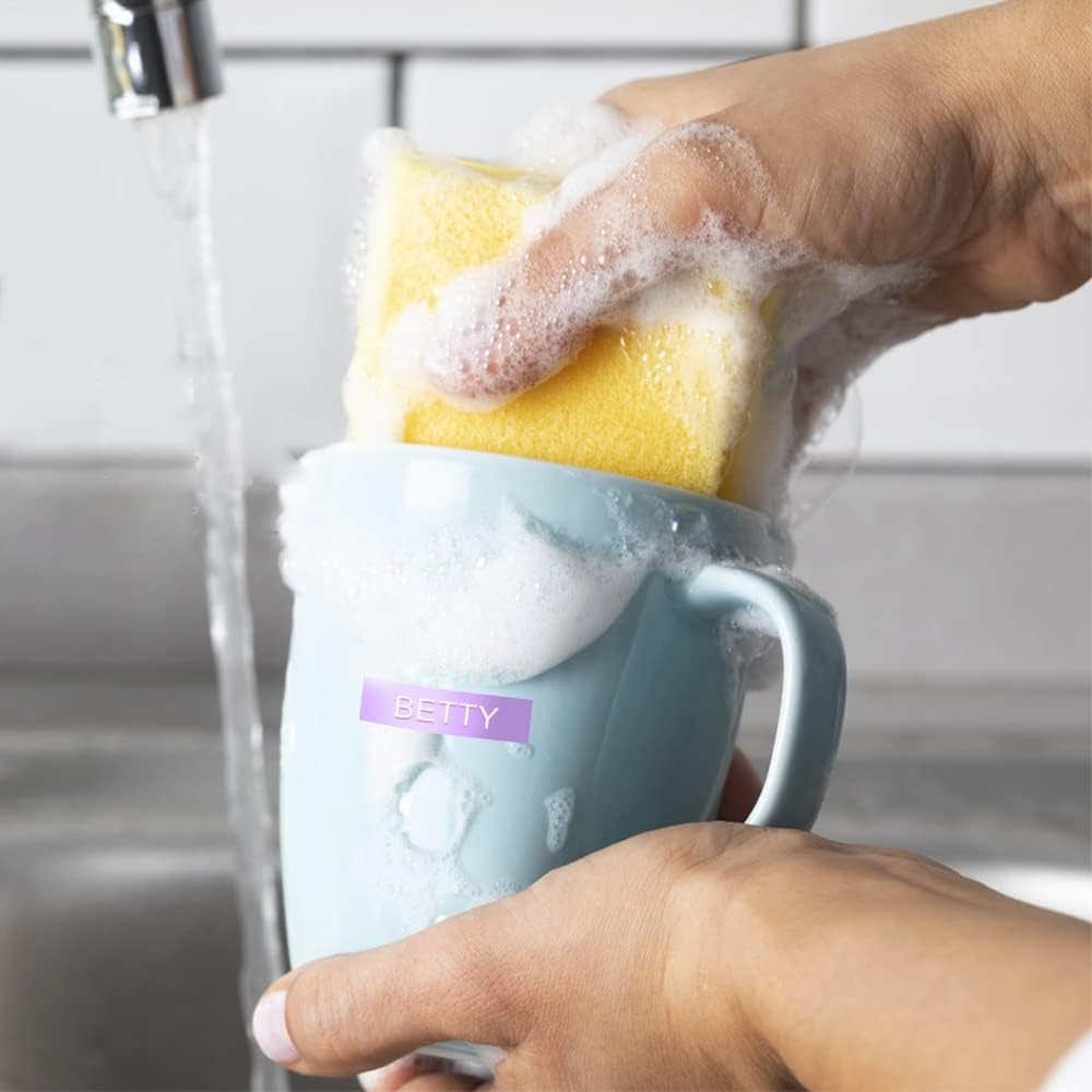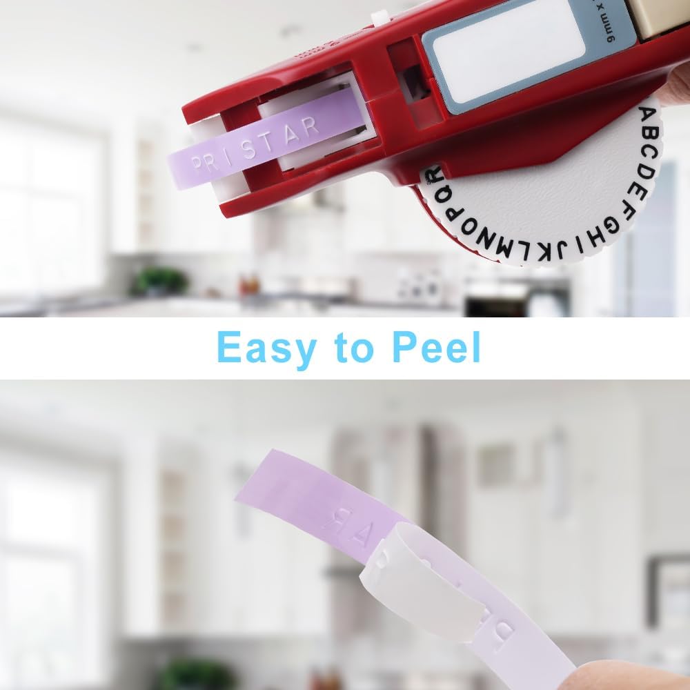 - Color: Self-Adhesive Vinyl White Print on Yellow/Light Blue/Light Green/Light Pink/Light Purple Tapes, 2 Rolls each Color; Size: 3/8 inch (9mm) x 9.8 feet (3m)