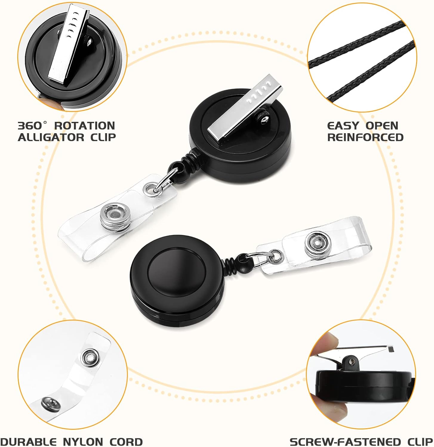 - Sturdy Retracting Cord: Nylon cord in the badge reels with clip extends smoothly up to 23.6 inches, allowing you to easily scan cards and unlock access to your office