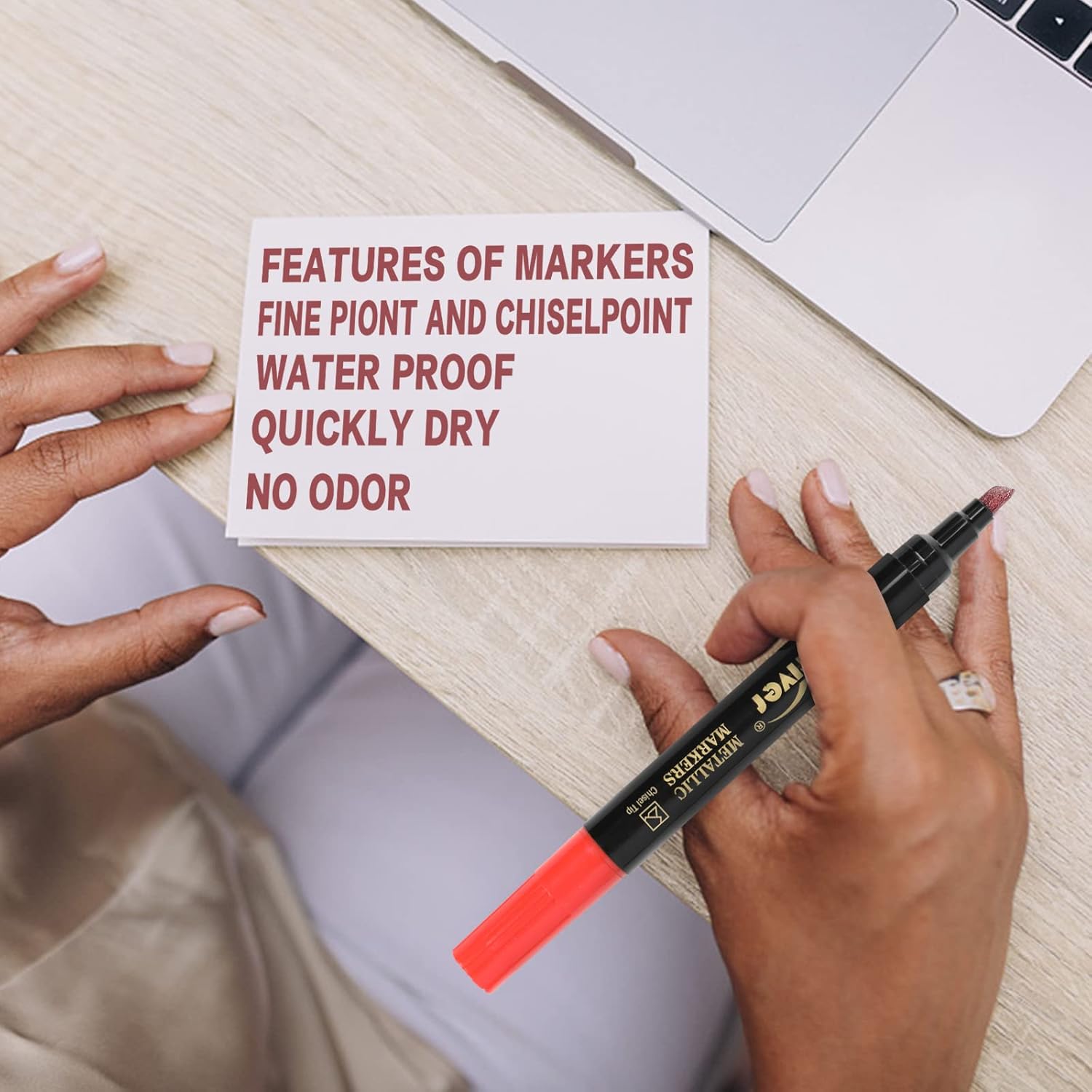 cloudriver Metallic Marker Pens, 48 Count, 12 Assorted Colors, Fine and Chisel Tip, Metallic Marker Pens For Black Paper, Art Rock Painting, Easter Egg, Card Making, Scrapbook Crafts