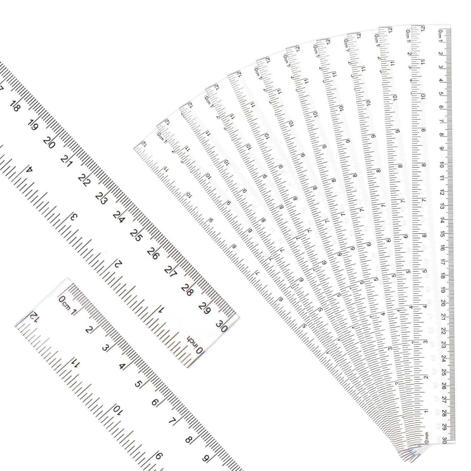 30PCS Clear Ruler Plastic Rulers 12 Inch, with Inches and Metric for School Classroom, Home, or Office (Clear)