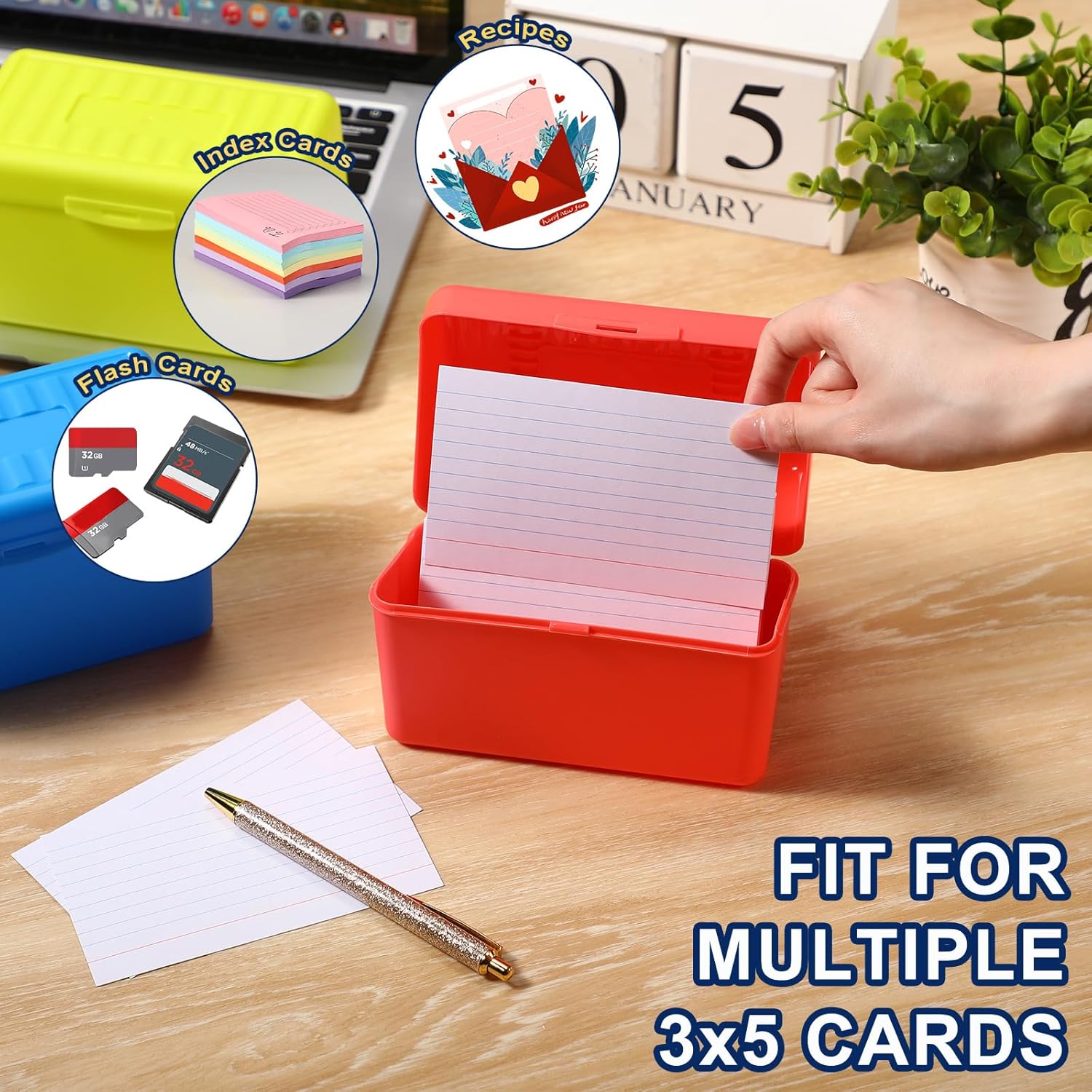 - Box Size: the index card box is about 5.7 x 3.4 x 3.5 inches/ 14.5 x 8.5 x 9 cm, which can hold up to 400 pcs about 3 x 5 inch index cards; You can close the box and take things with you when you need