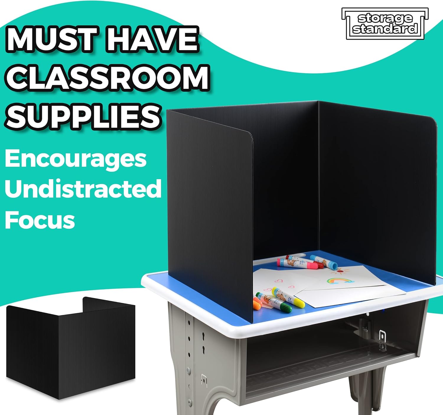 22-Pack Desk Dividers for Students - Durable & Waterproof Plastic Study Carrel Divider, Classroom Folders Teacher Supplies, Easy-to-Clean Plastic Privacy Shield Folder Boards for Student Desks, Black