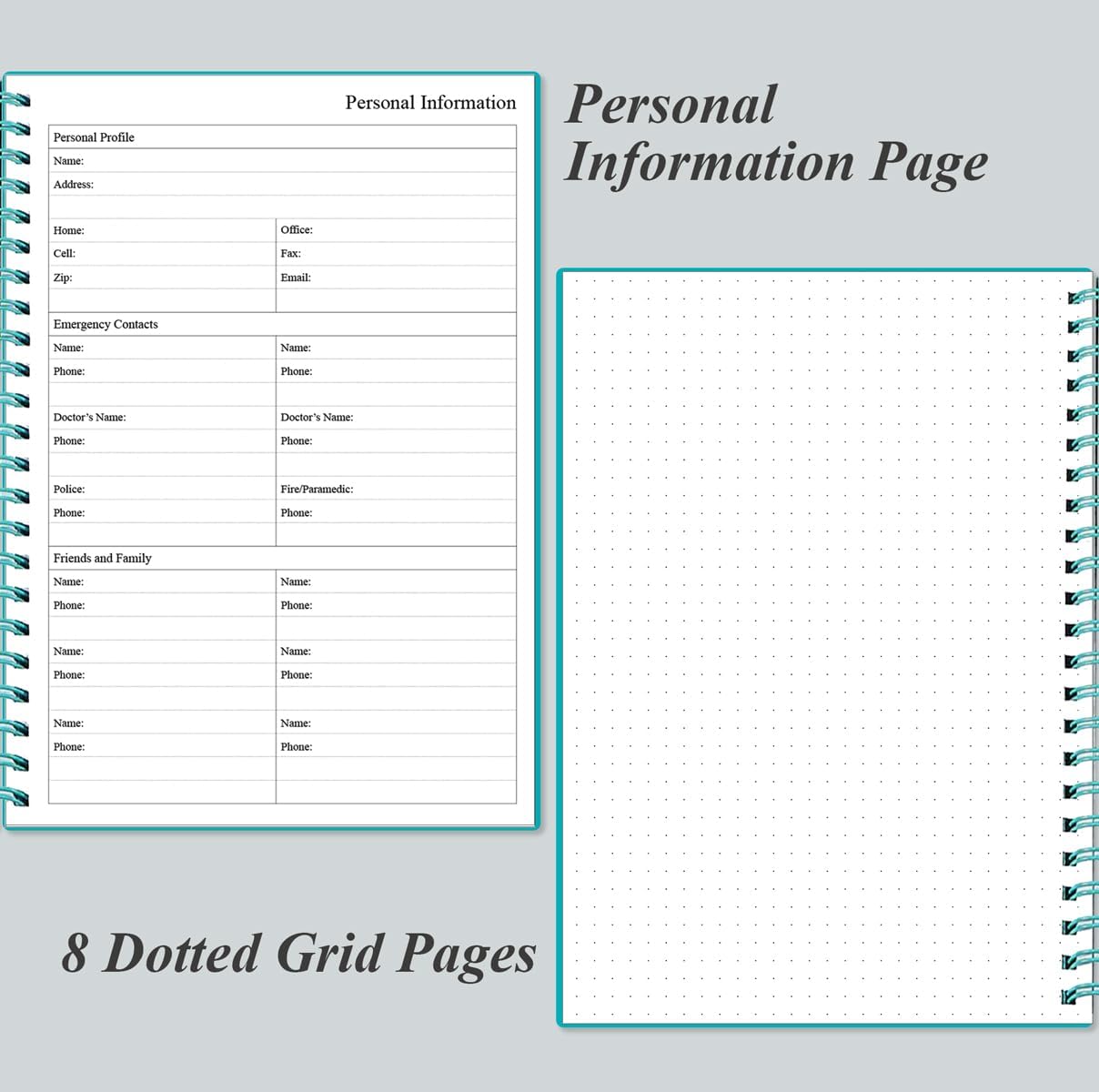 - A5 SIZE - This undated daily organizer size of 8.5 x 5.8 inch, perfect size to fit in your bag.1 quick reference page, contact pages, important dates page, and 75sheet (150 page) daily plan & notes,8 dotted grid pages, Undated appointment planner makes it easy for you to start the planner at any time.