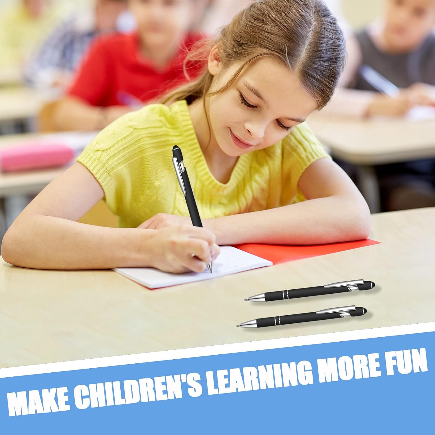 8 Pcs Blue Ink Ballpoint Pen with Stylus Tip 2 in 1 Stylus Ballpoint Pen Metal Pens Stylus Pen for Touch Screens School Office Coworkers (Black)
