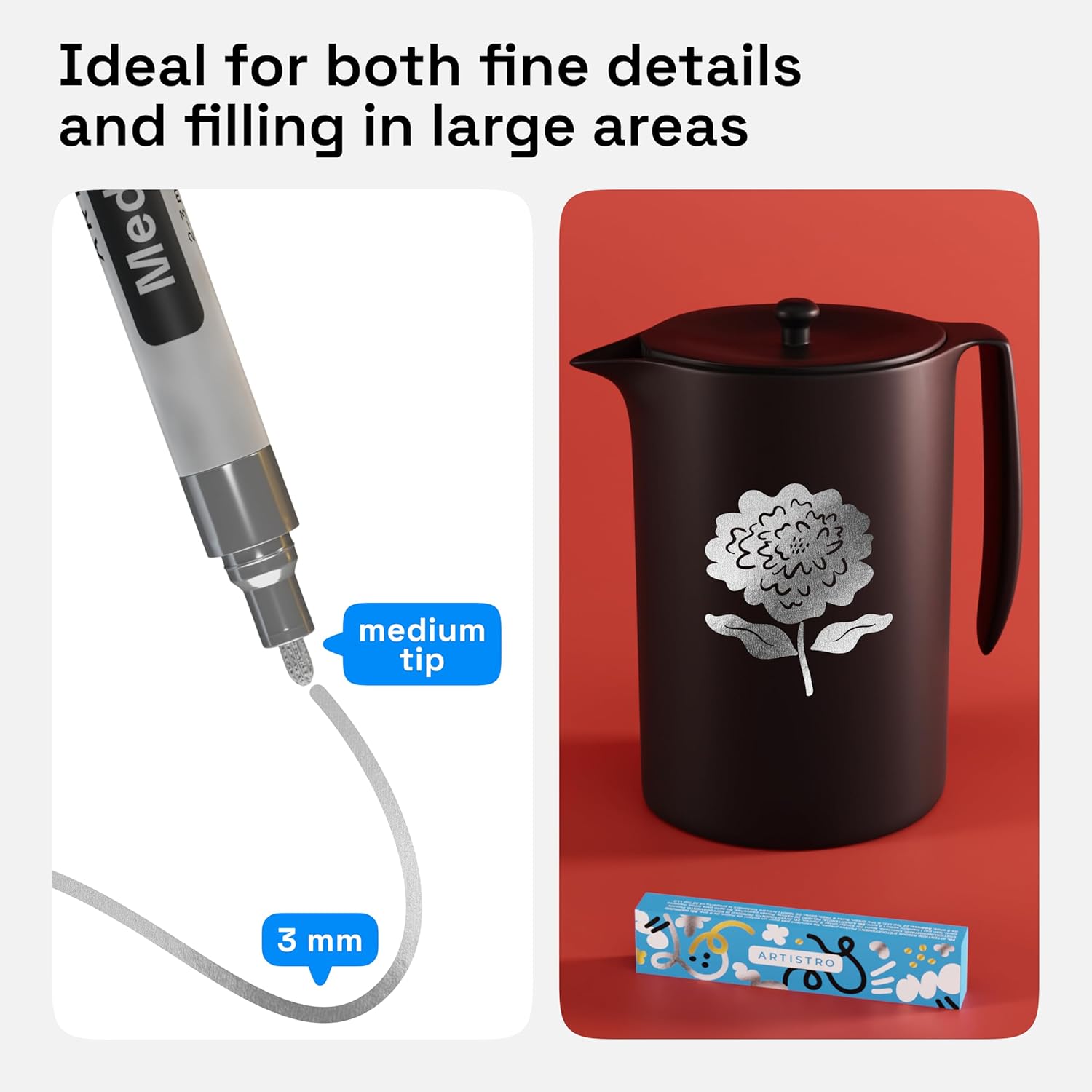 ARTISTRO 2 Silver Acrylic Paint Markers - 3mm Medium-Tip Paint Pens - Perfect for Crafting, Art Projects, & More