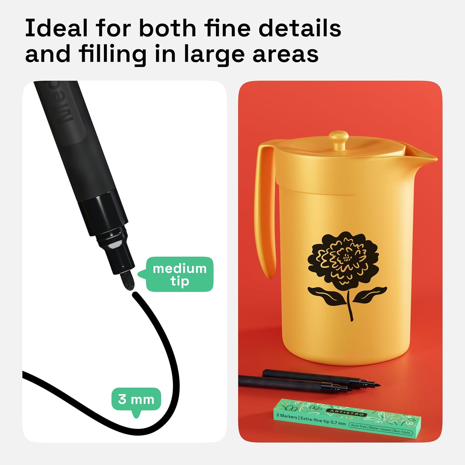 ARTISTRO 2 Black Acrylic Paint Markers - 3mm Medium-Tip Paint Pens - Perfect for Crafting, Art Projects, & More
