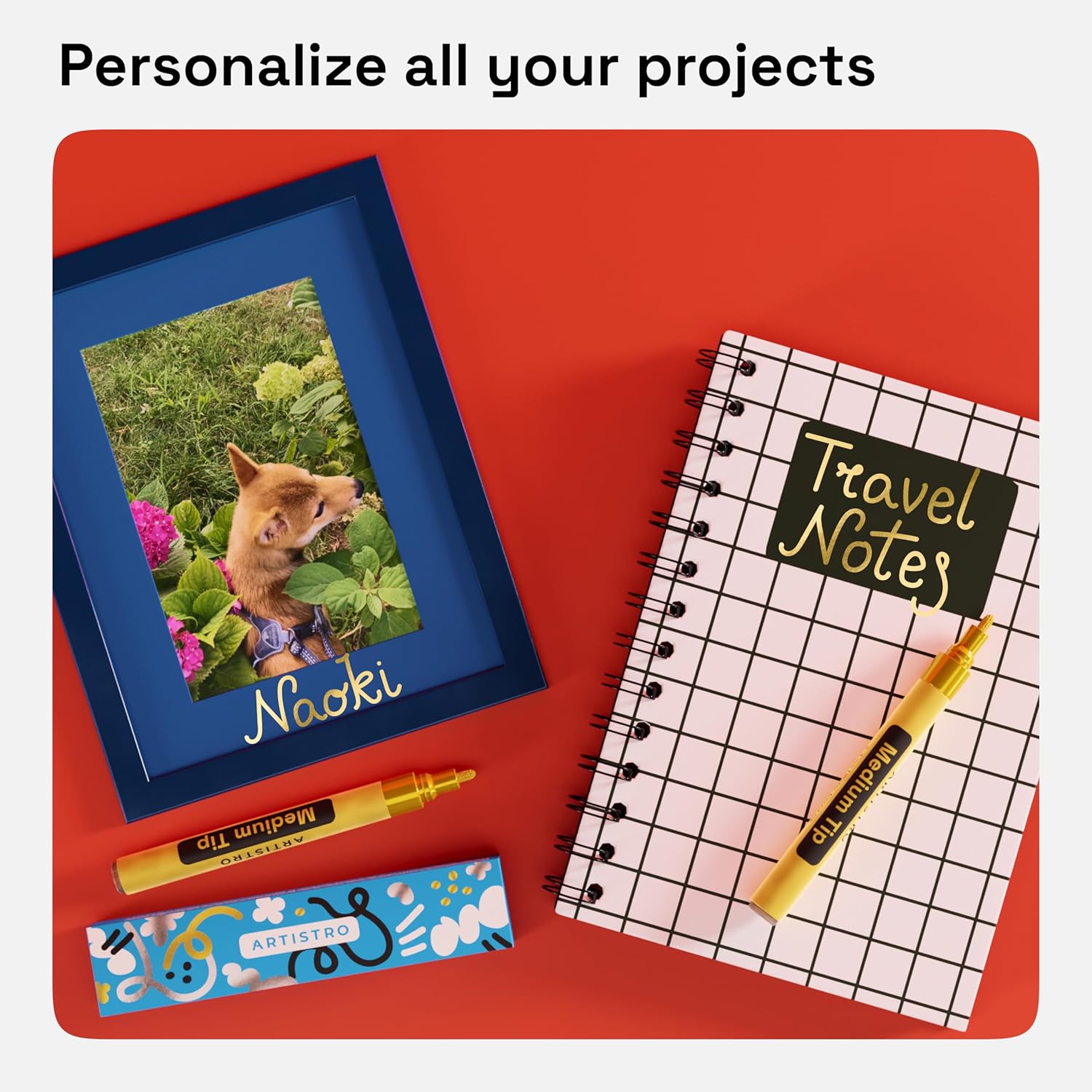 ARTISTRO 2 Gold Acrylic Paint Markers - 3mm Medium-Tip Paint Pens - Perfect for Crafting, Art Projects, & More