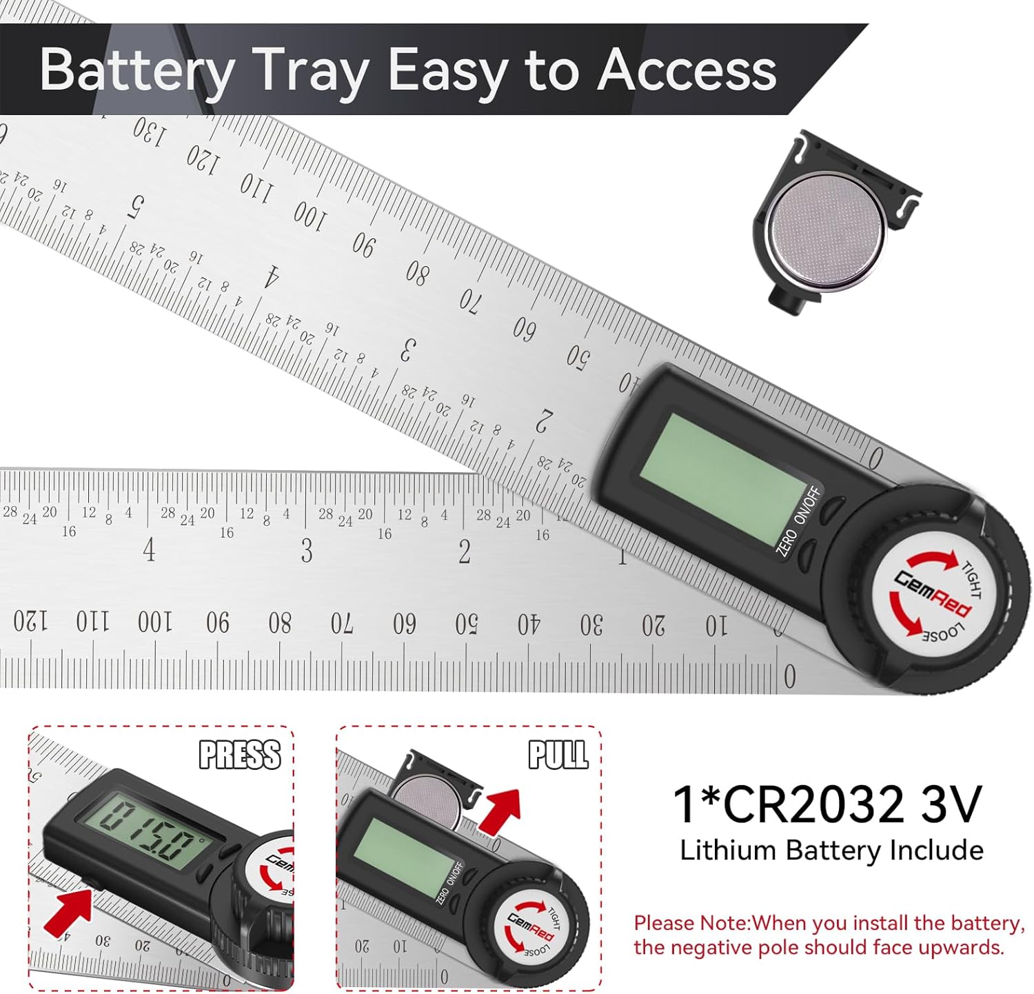 - Locking Function】For read it easily, GemRed angle finder could be locked at any angle. *NO REVERSE ANGLE/DISPLAY FUNCTION.