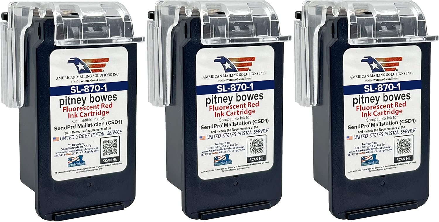 AMERICAN MAILING SOLUTIONS INC. | 3-Pack | PB SL-870-1 Red Fluorescent Ink Cartridge Replacement for SendPro Mailstation (CSD1) Postage Meter…