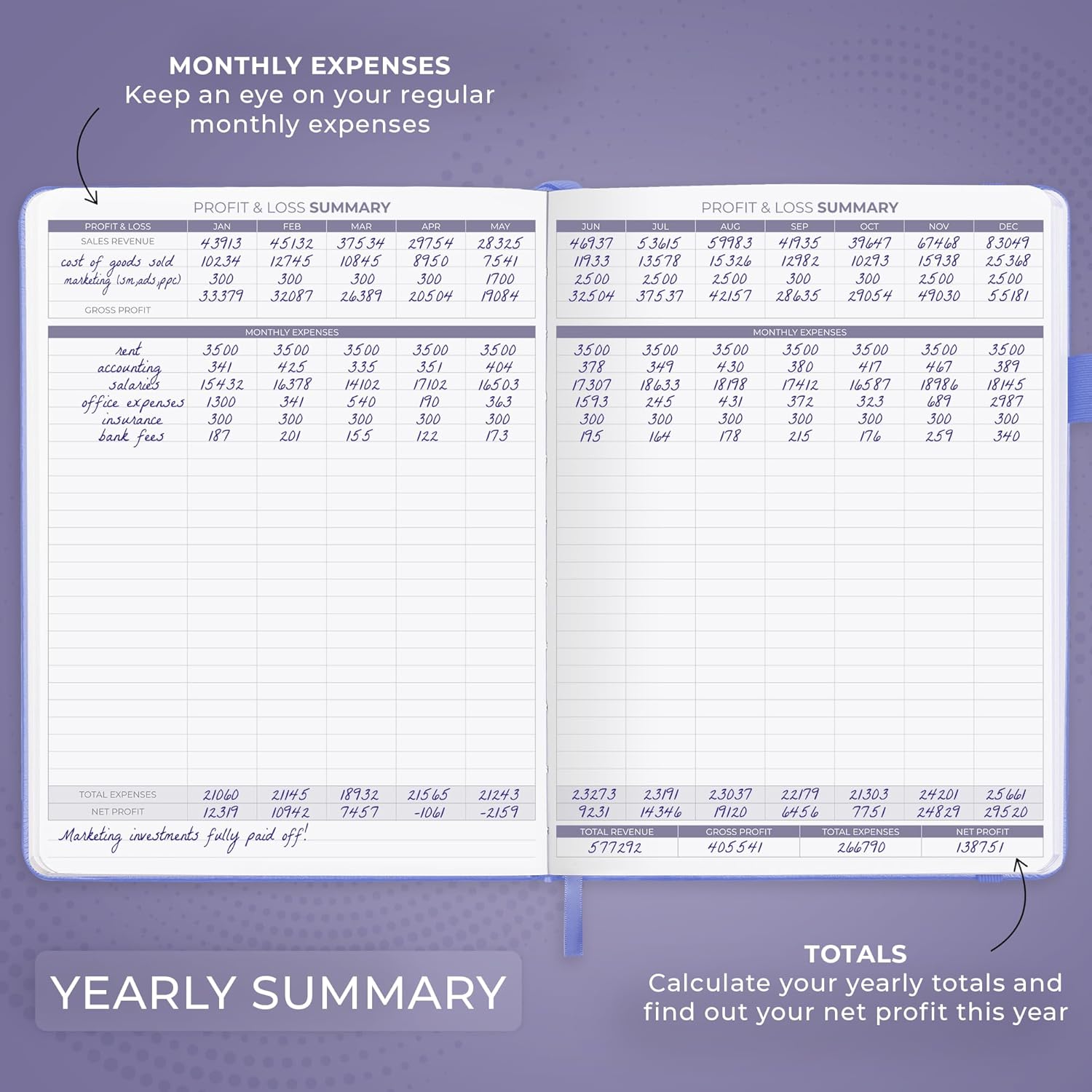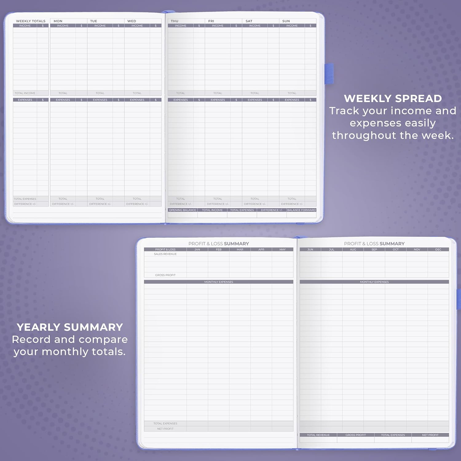 - 2 FULL YEARS OF STRESS-FREE ACCOUNTING: This accounting book is undated and lasts 2 years and has 225 pages, including 106 weekly views, 2 annual summaries, empty note pages, and, at the back, a spacious pocket for receipts.