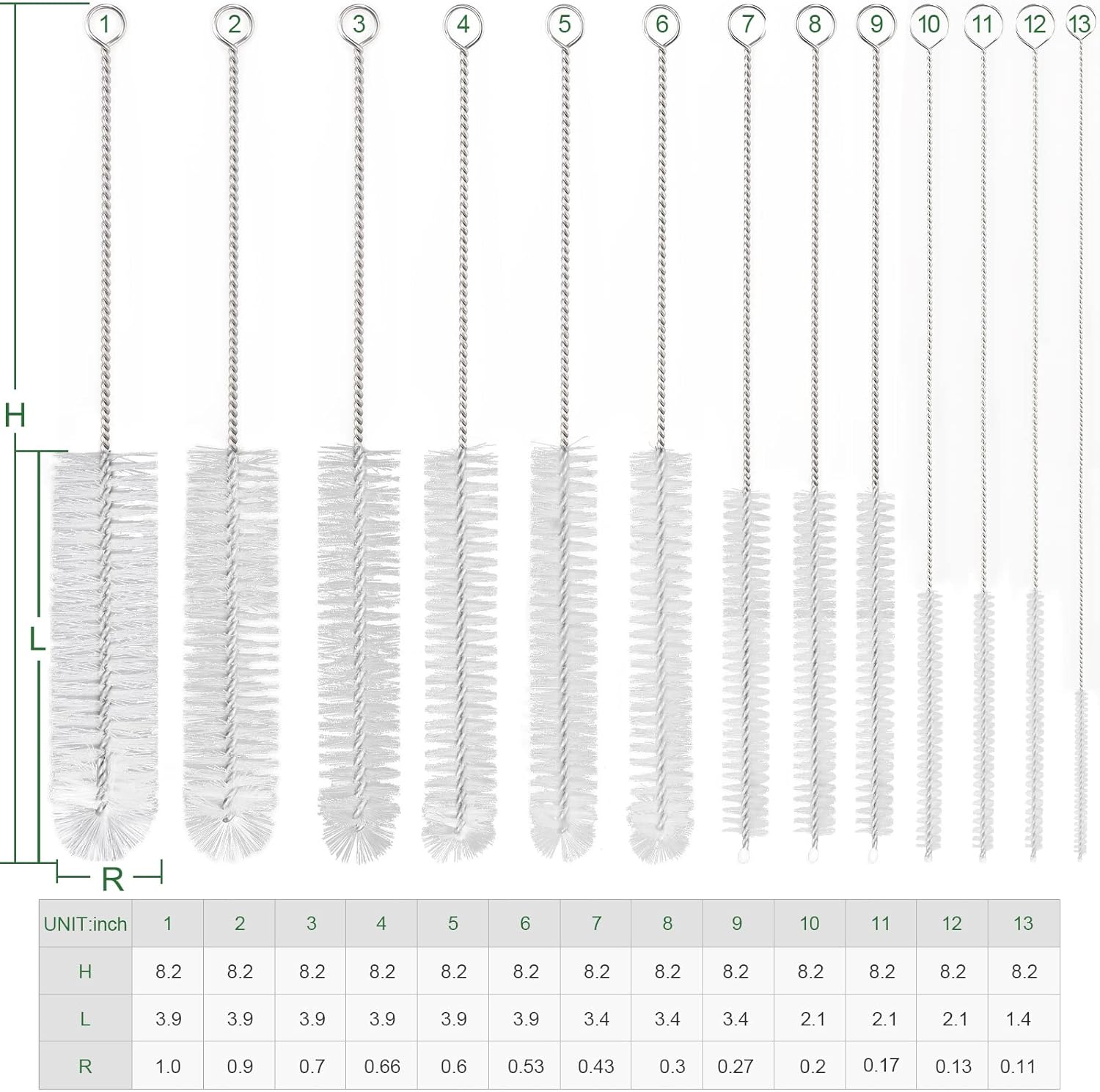 CiaraQ Bottle Cleaning Brushes, 8 Inch Nylon Tube Brush Set, Cleaner for Narrow Neck Bottles Cups with Hook, Set of 13pcs, White