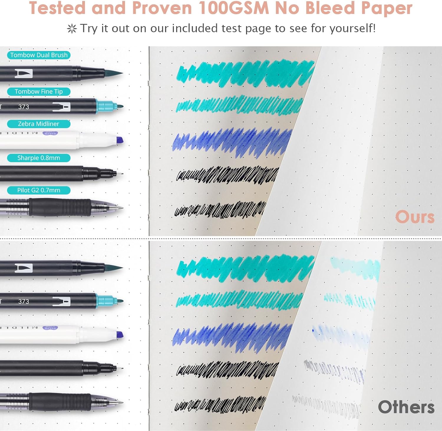 - 【Thick Paper for Writing Without Limits】Large B5 hardcover notebook (7.6"x 10"/193mm x 254mm), total 320 pages, includes 312 numbered pages(156 sheets). Each page includes 1887 dots with 5mm spacing: X37*Y51. Our INNOVATIVE PAPER TECHNOLOGY on 100GSM thick paper ensures a perfect canvas for your ideas - no bleed, no ghosting, as confirmed by tests with various pens commonly used in bullet journaling.