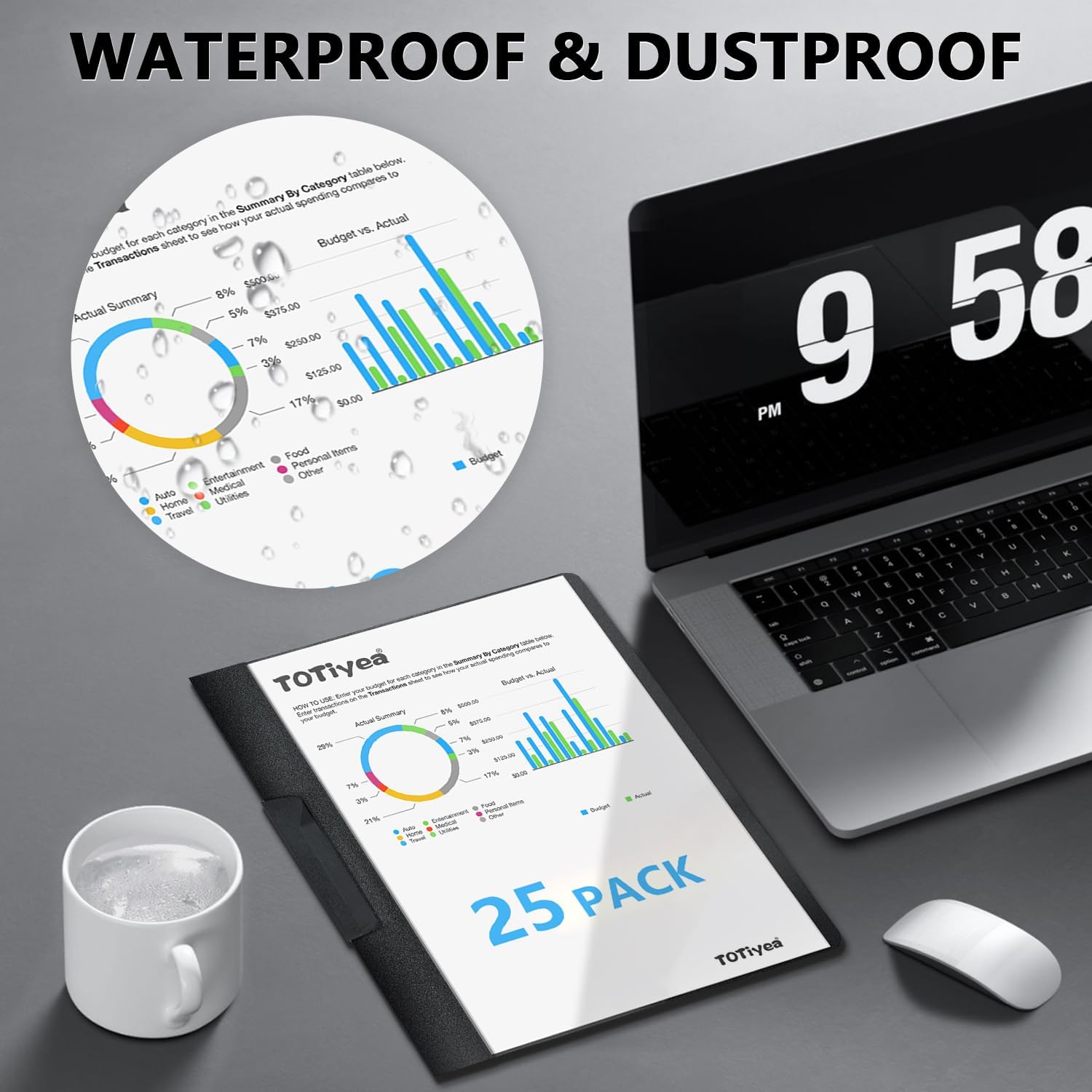 TOTiyea 25 Pack Clear Report Covers with Swing Clip, File Folder with Swing Clip, 30 Sheets Capacity, Slide Locking Report Covers, Letter Size (Black, 25 Pack)
