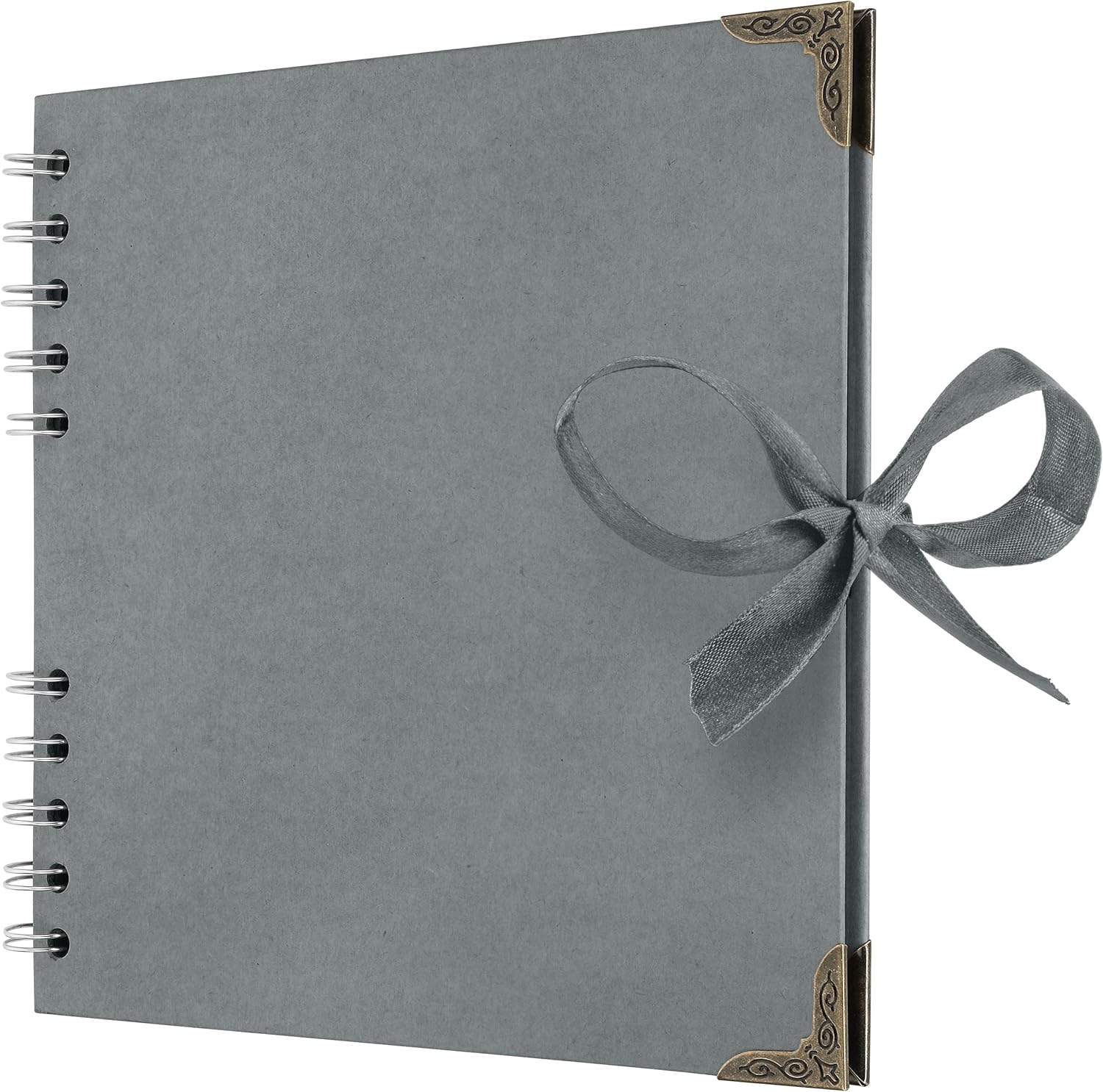 Bstorify Square Scrapbook Photo Albums 7 x 7 Inch Grey Hardcover with Ribbon Closure - Ideal for Scrapbooking, Art & Craft Projects