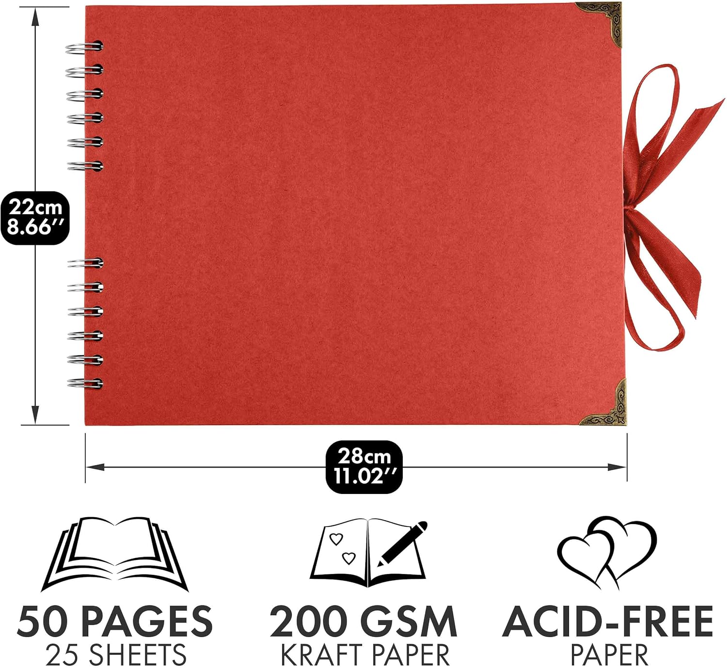 Bstorify Square Scrapbook Photo Albums 50 Pages (11 x 8.5 Inch) Red Thick Paper, Hardcover, Ribbon Closure - Ideal for Your Scrapbooking Albums, Art & Craft Projects (Red, 11 x 8.5 Inch)