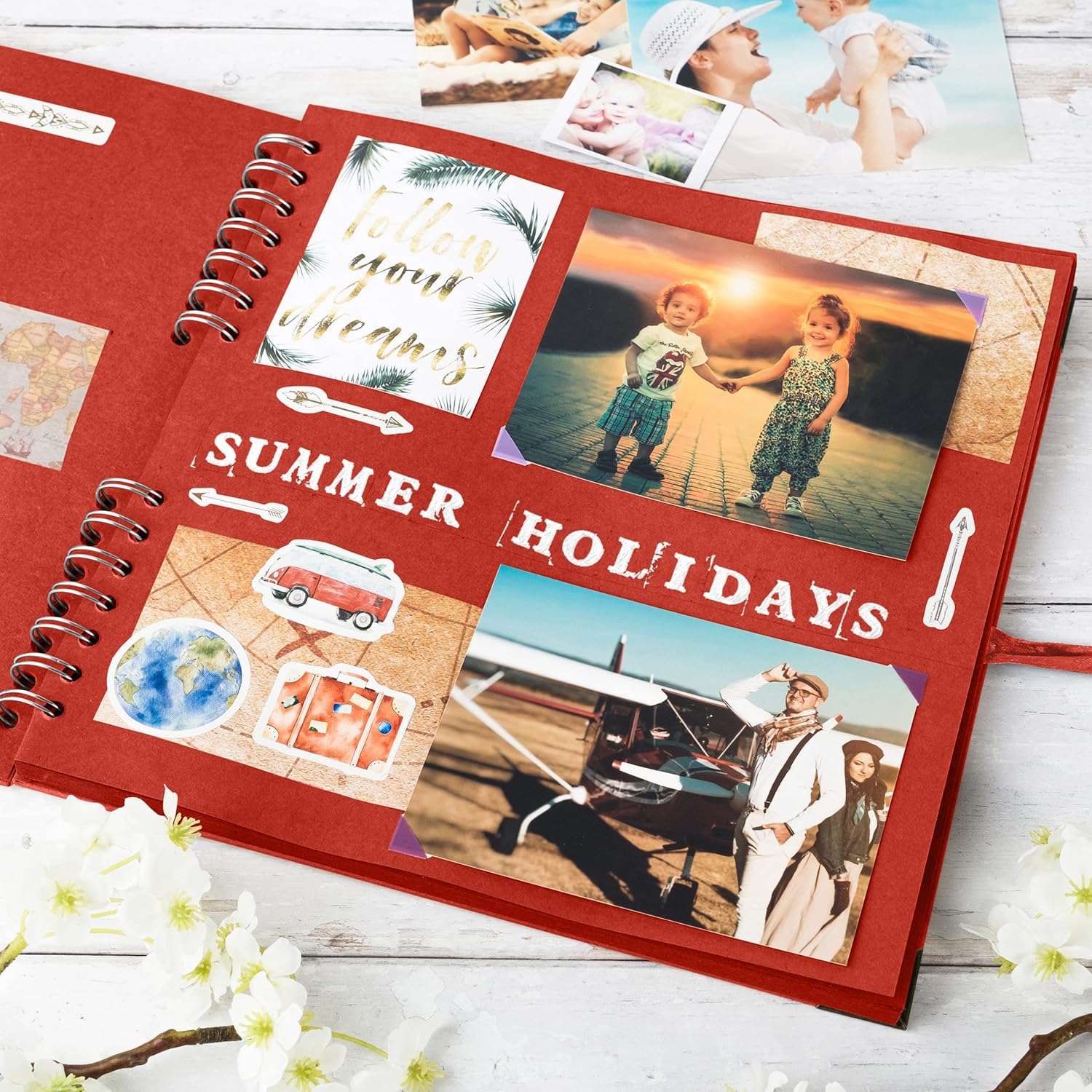 - The spiral bound spine allows the photo album self adhesive pages to expand to fit in your photos, postcards, souvenirs. You can tie the ribbon into a bow or other style that you like and make your photo album scrapbook as individual as your memories and keep them endlessly