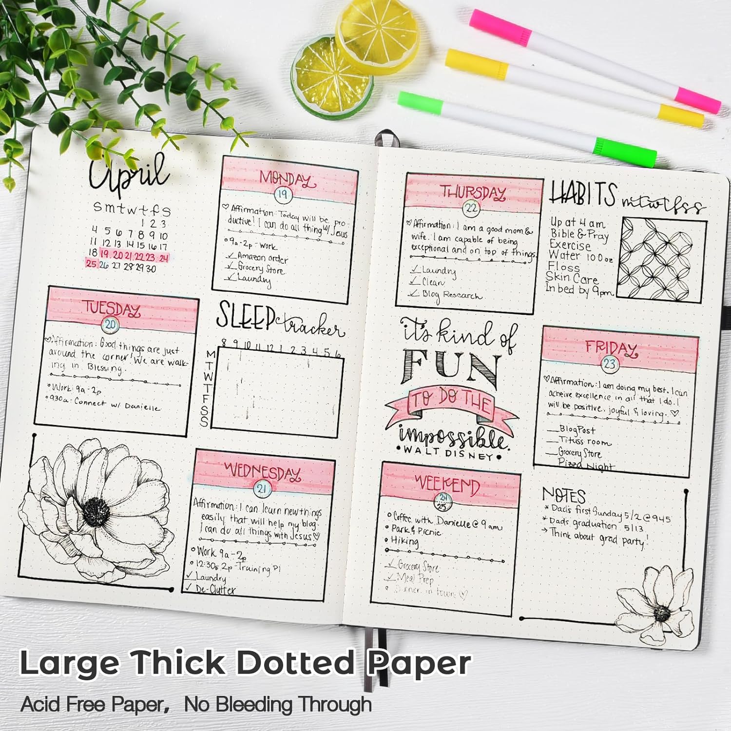 - Dotted Paper Notebook: Thick journal boasts top-tier 192 acid free pages with 5mmx5mm dot grid spacing to create a smooth writing experience. This superior quality paper prevents any ink bleed-through, ensuring every note, sketch, or idea remains pristine and neat on the both sides.