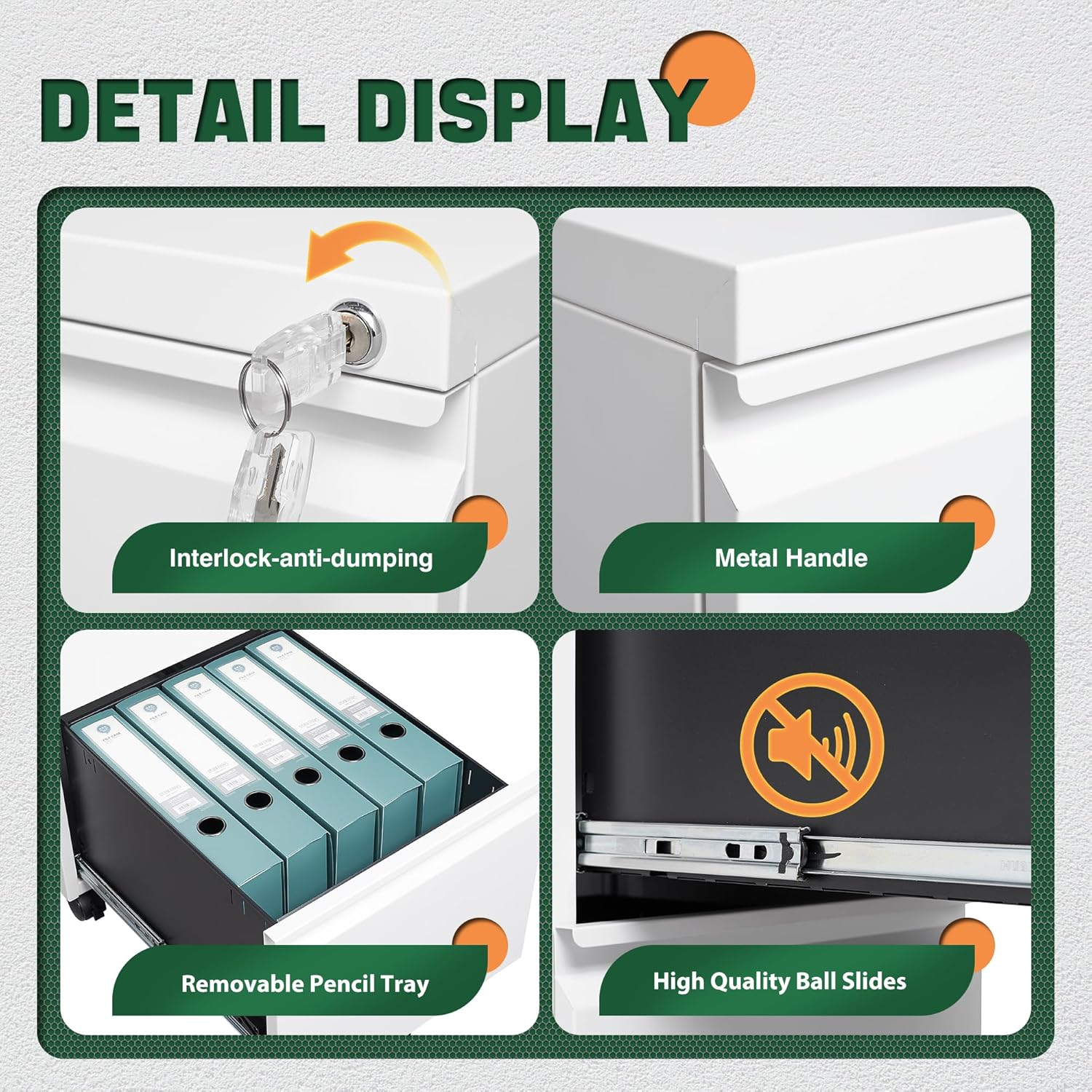 - Durable Metal Material:File cabinet is made of 0.8mm thick steel,whole is solid and does not deform, and it is stronger than wooden filing cabinets in terms of firmness, durability, moisture resistance, and fire protection