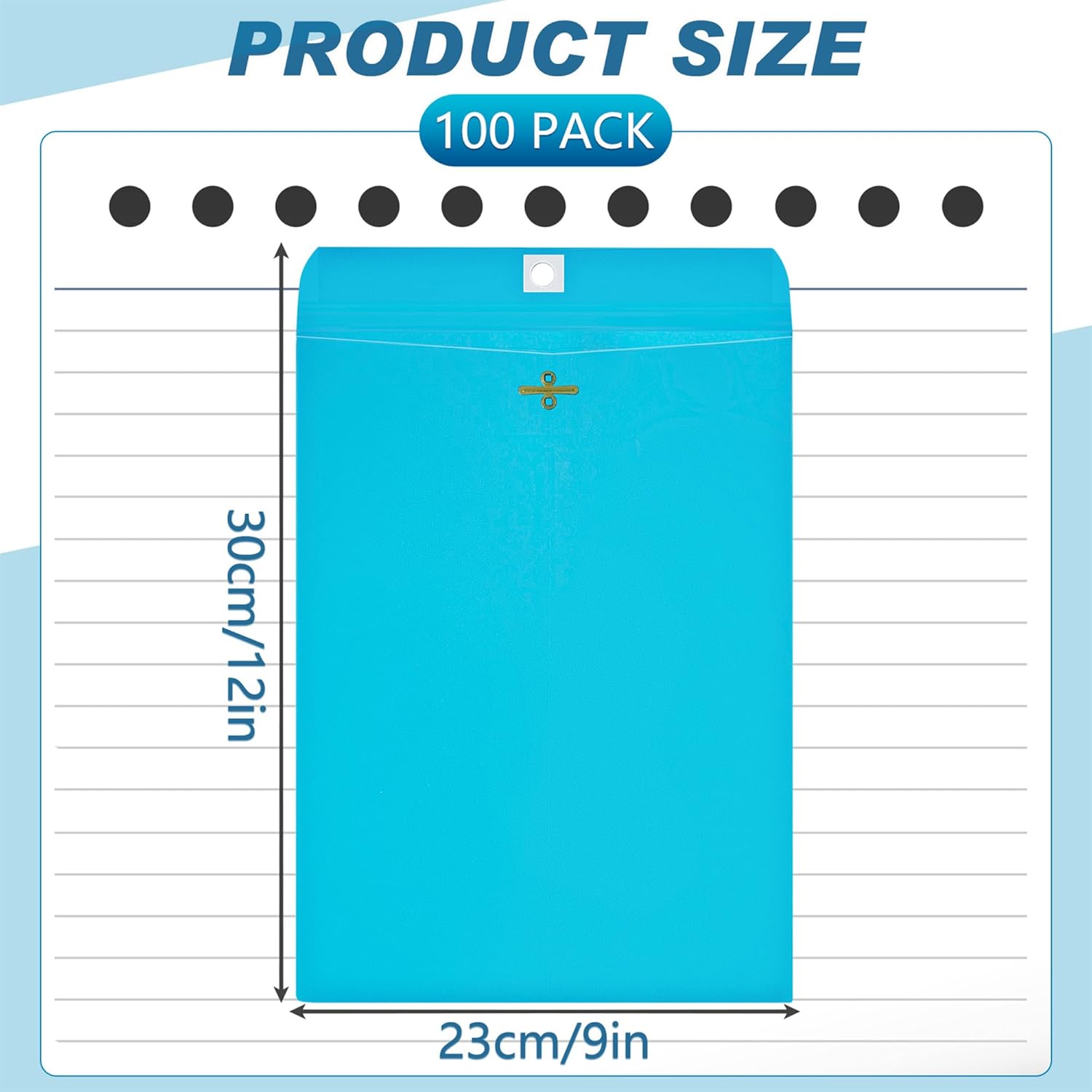Geyee 100 Pcs Clasp Manilla Envelopes 9 x 12 Inch Gummed Colored Envelopes for Storing or Mailing for Home Office Business Supplies(Lake Blue)
